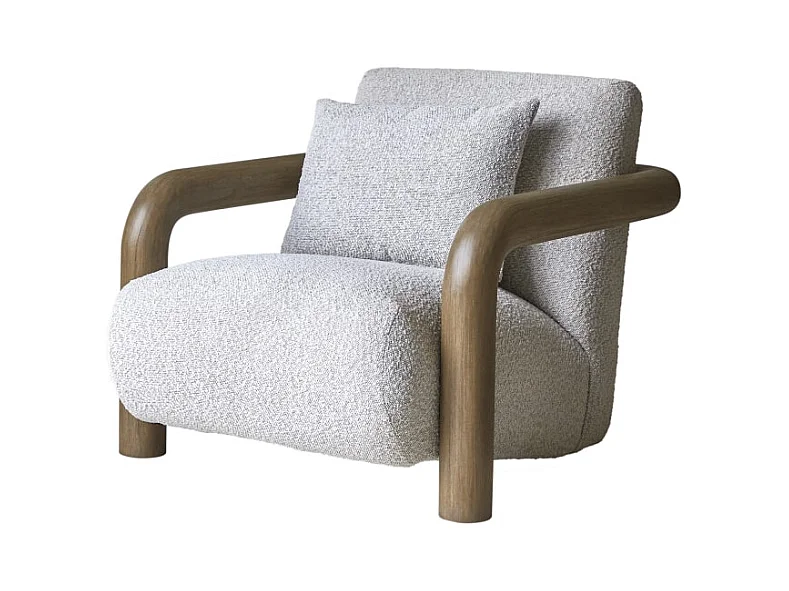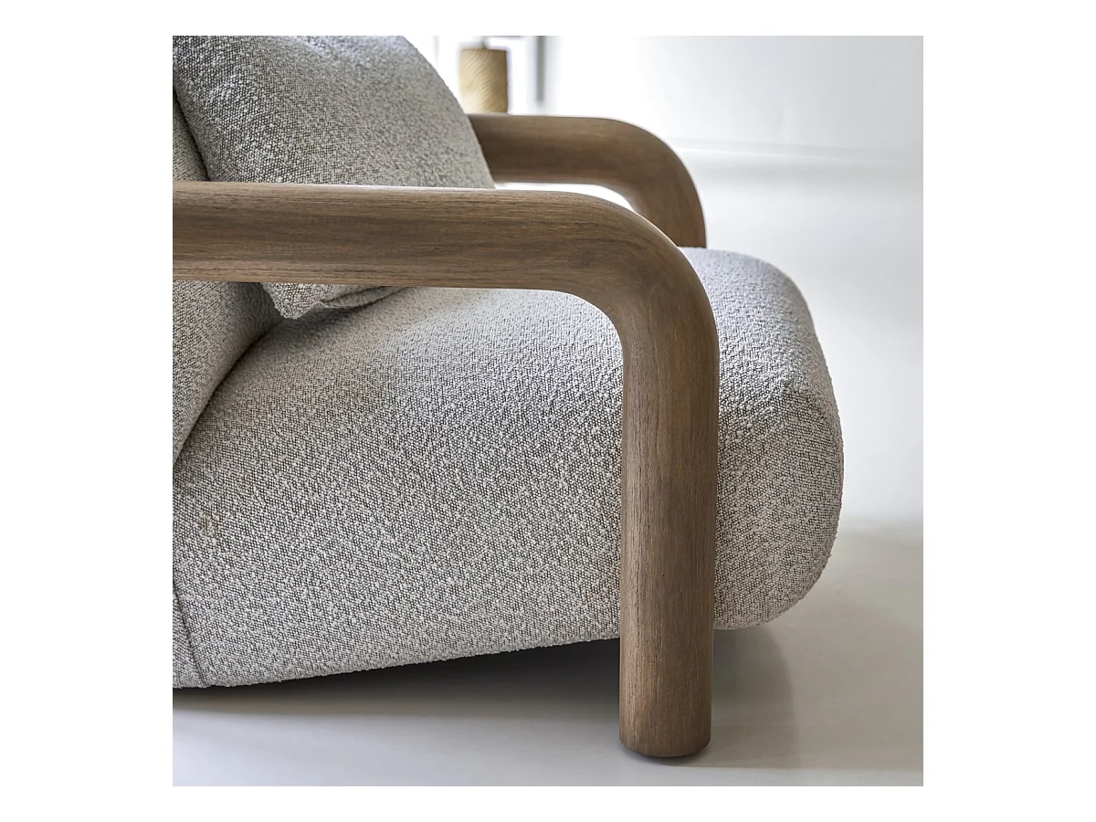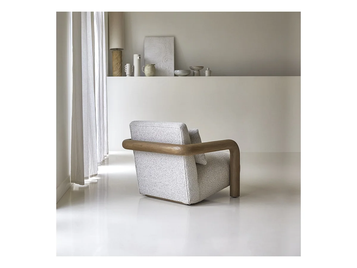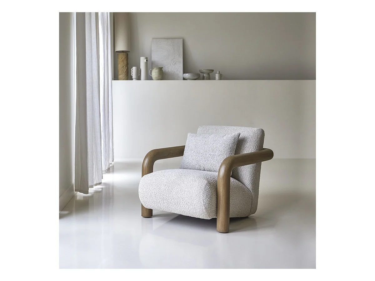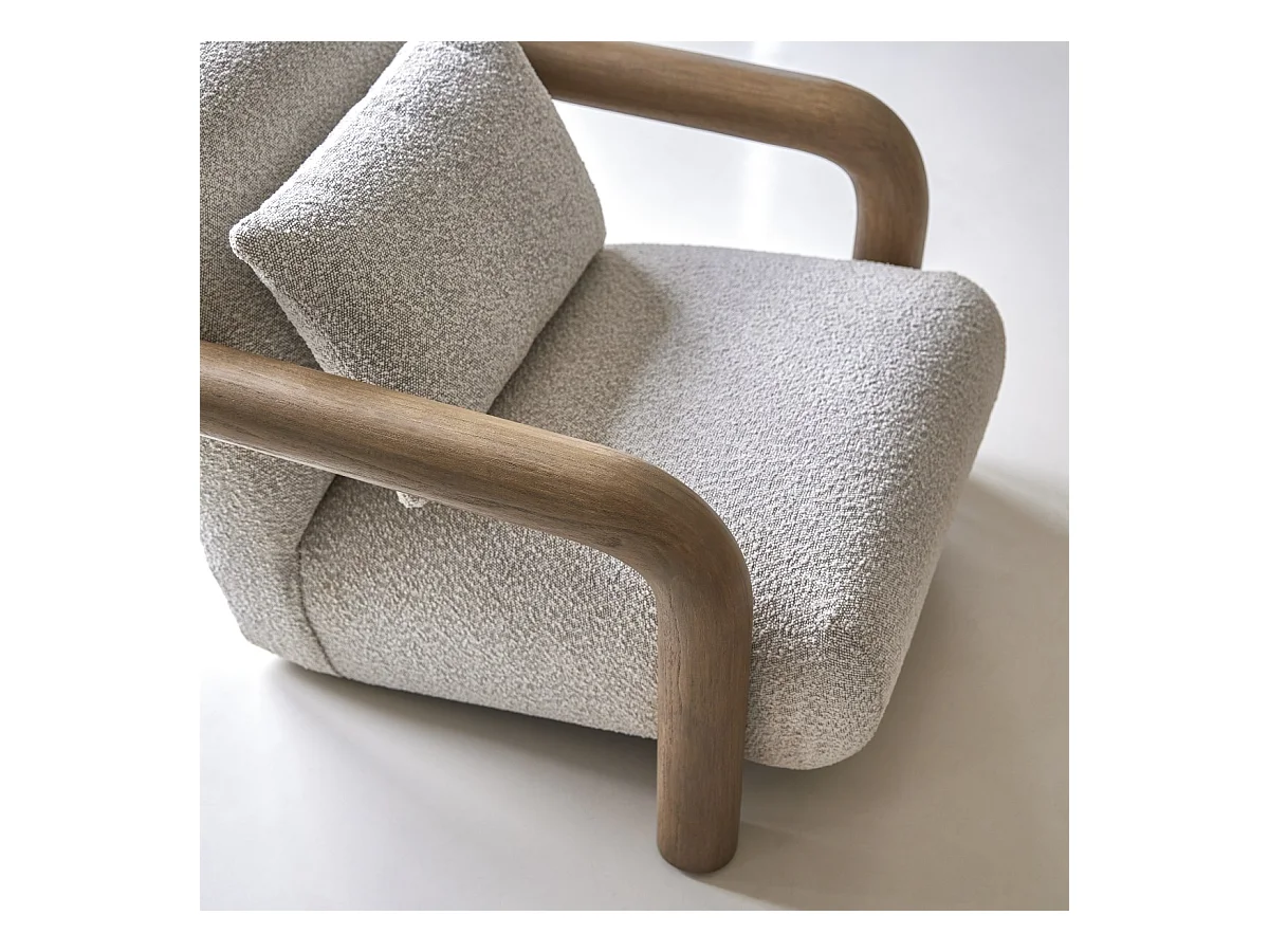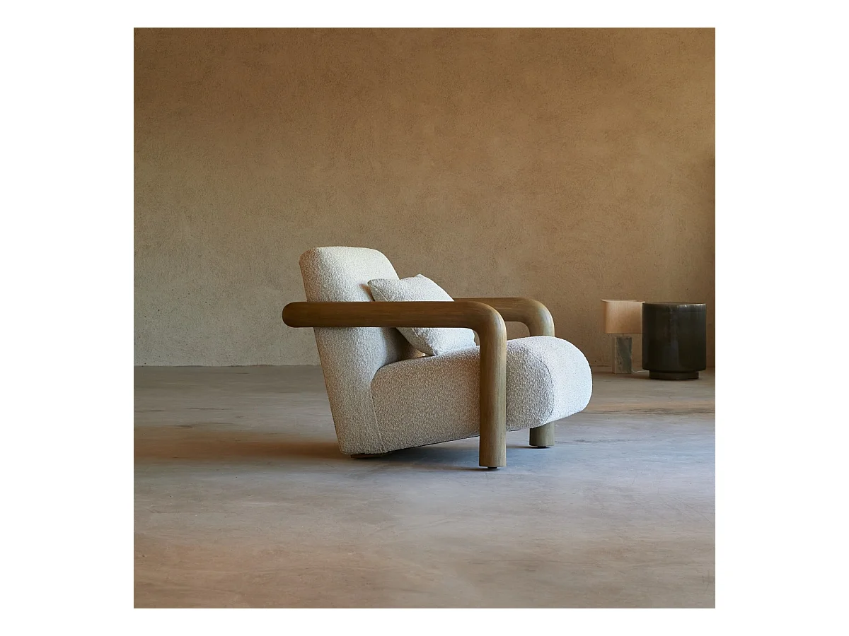 Sessel Nina aus massivem Mindiholz und ecrufarbenem Stoff ,1-Sitz