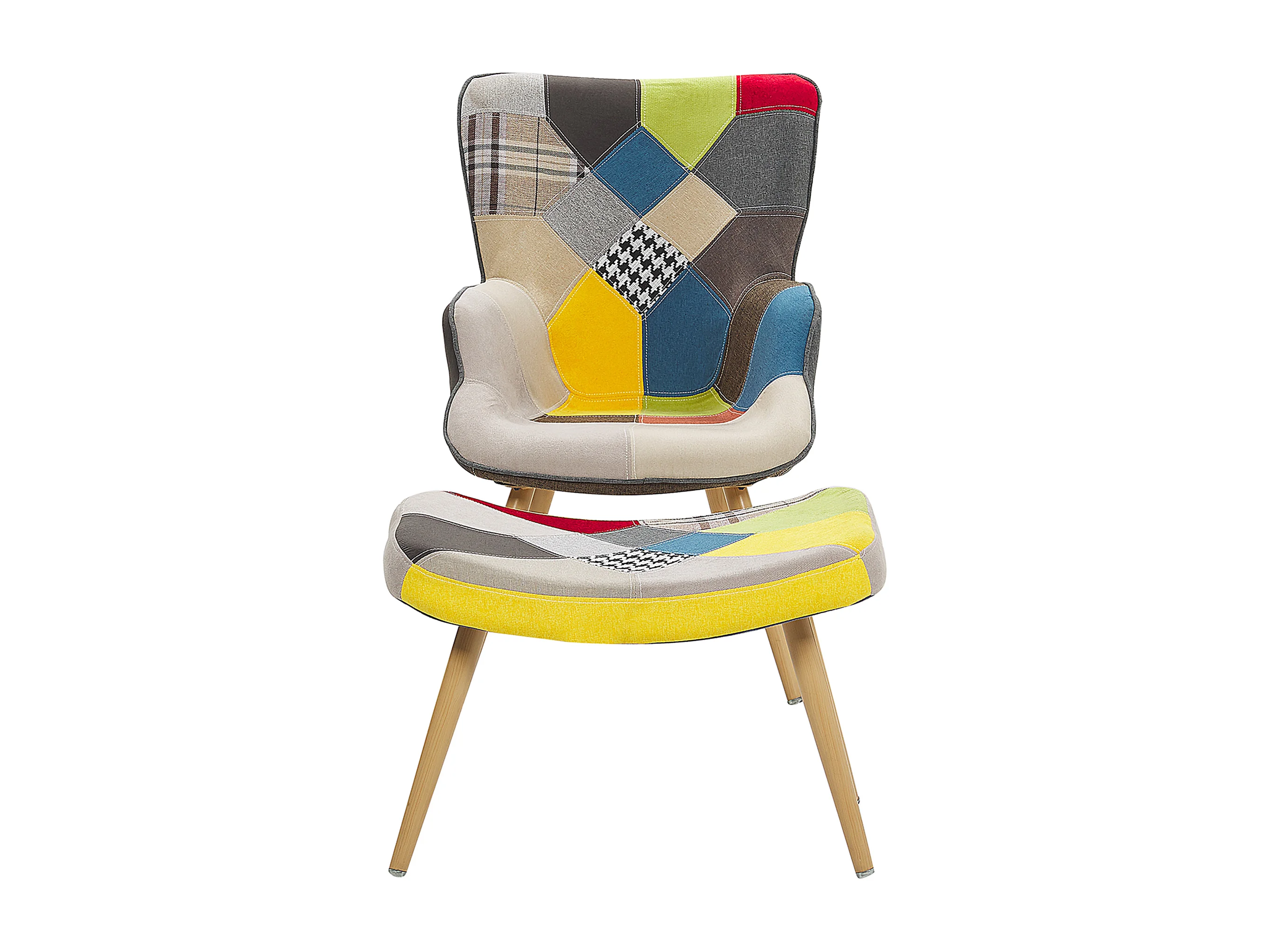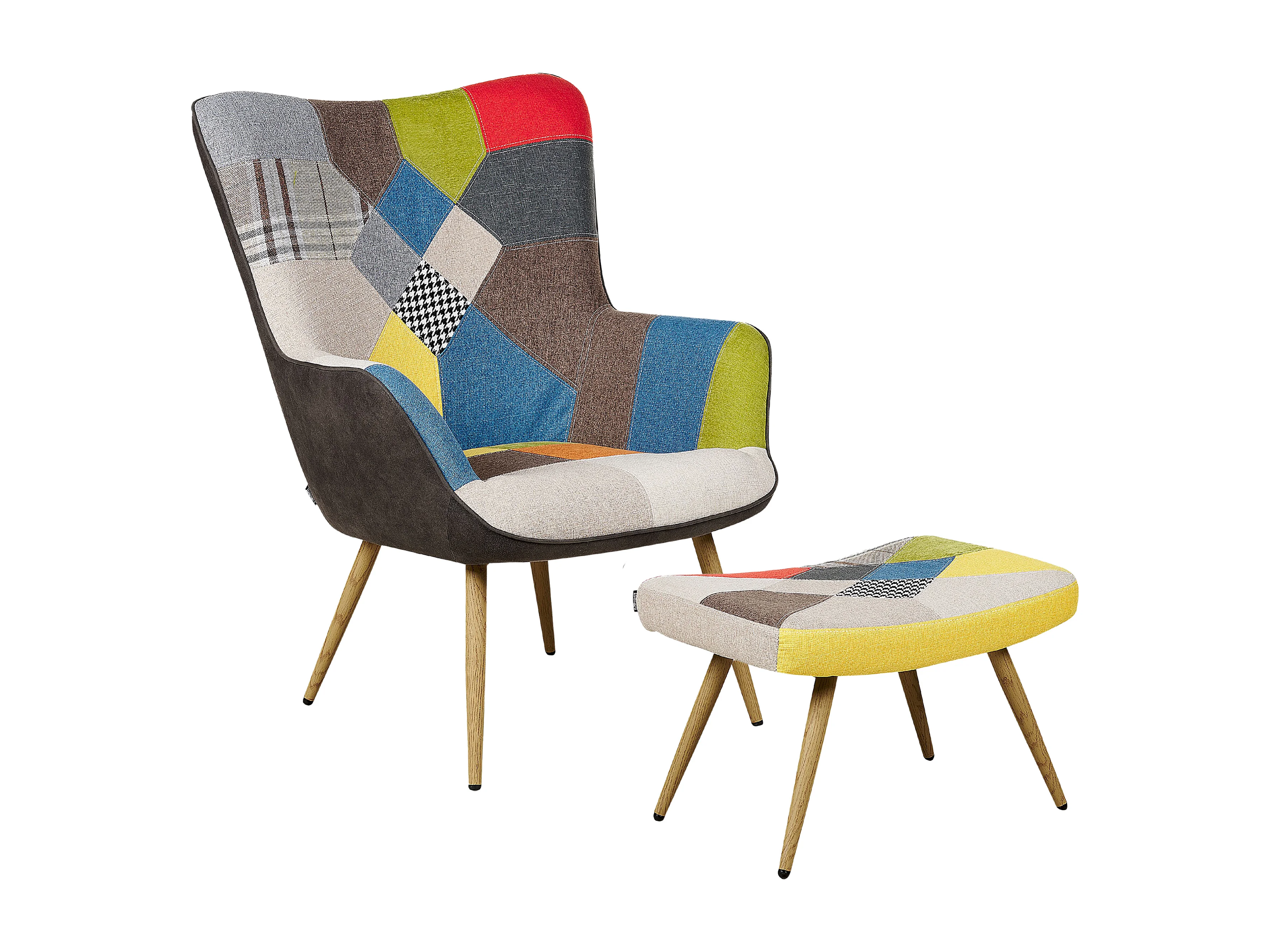 Trendy Ohrensessel mit Hocker Polyester und Metall patchwork/bunt Vejle II