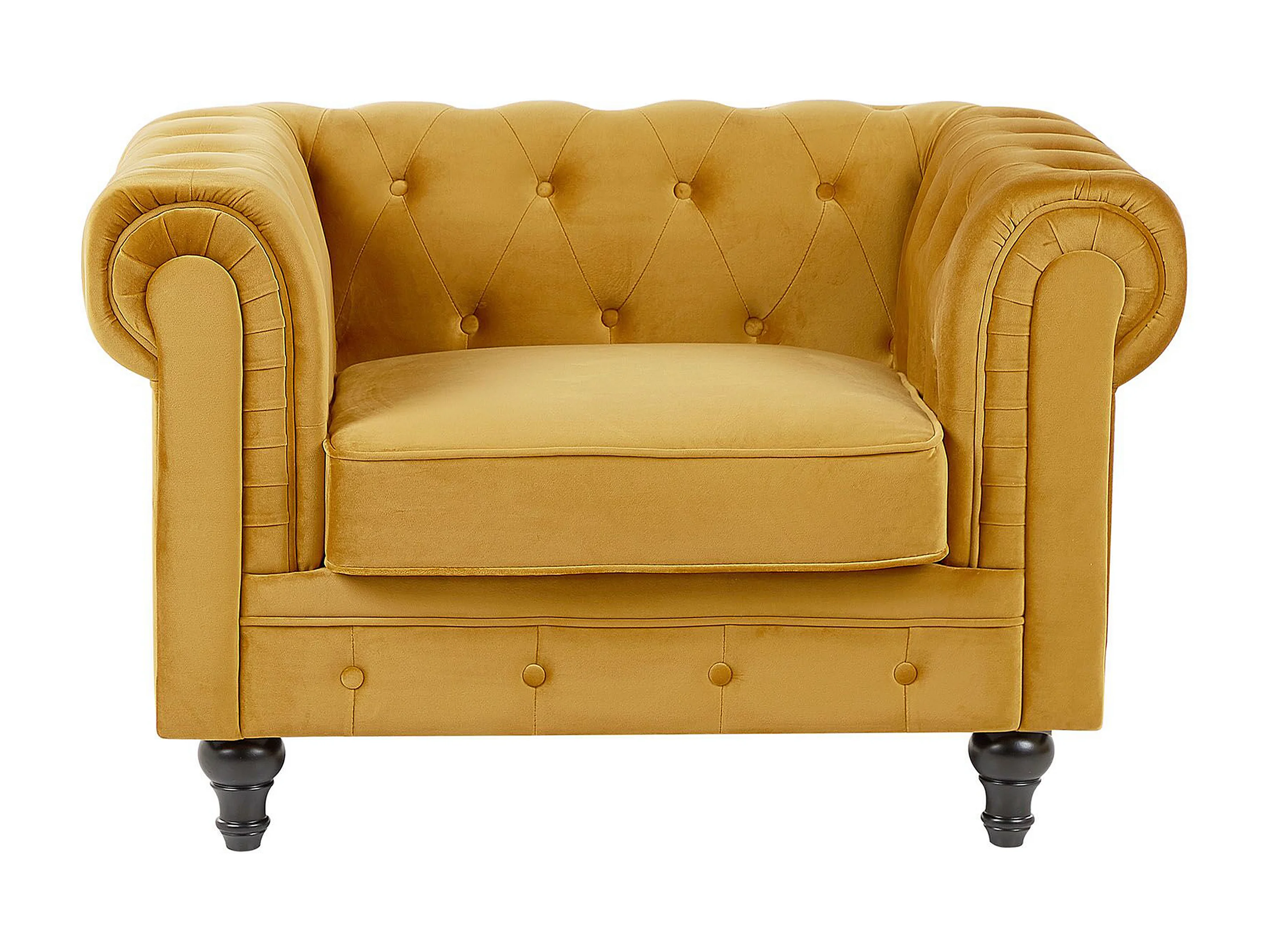 Klassischer Sessel im englischen Stil Samtstoff Senfgelb Chesterfield
