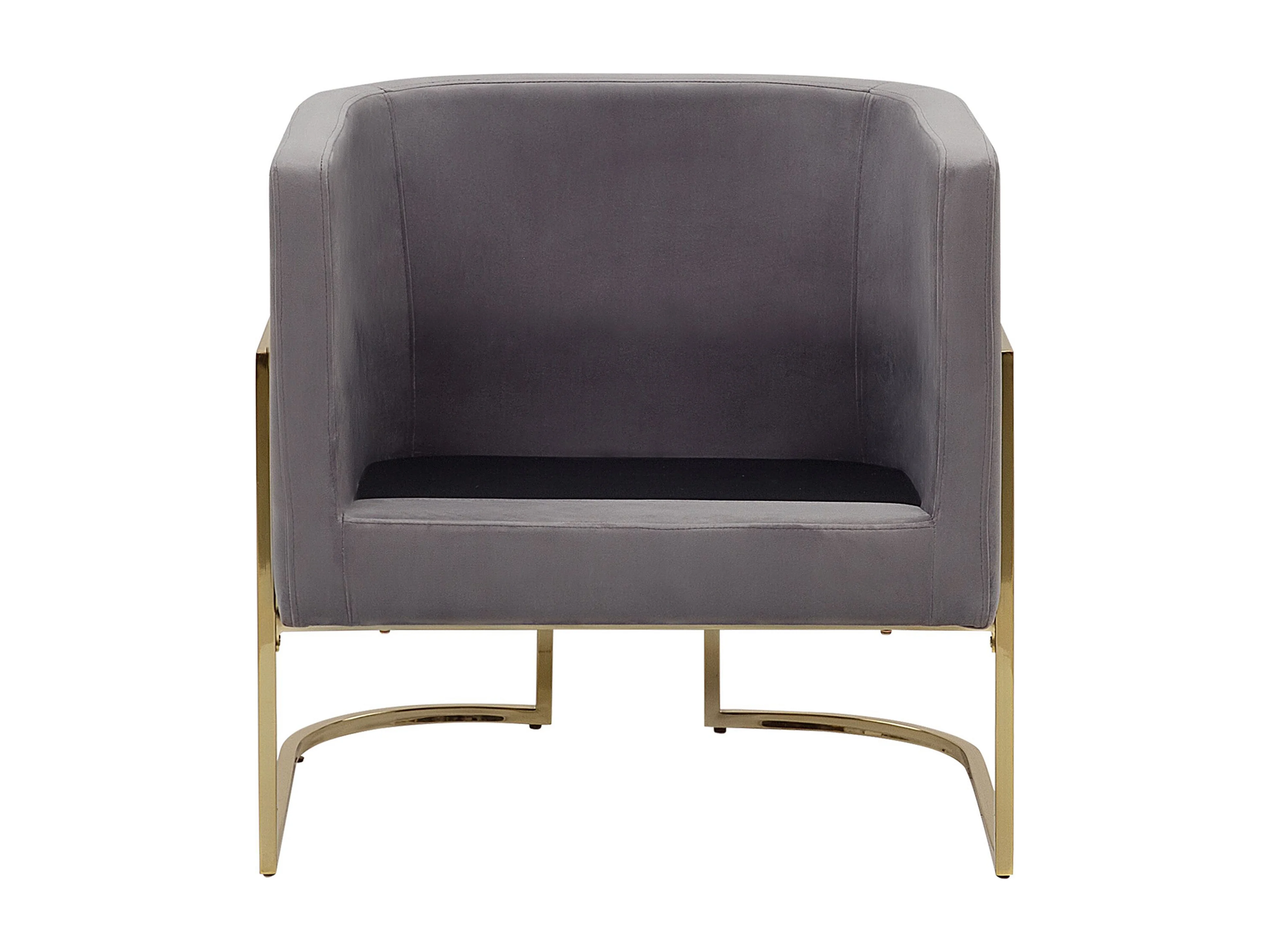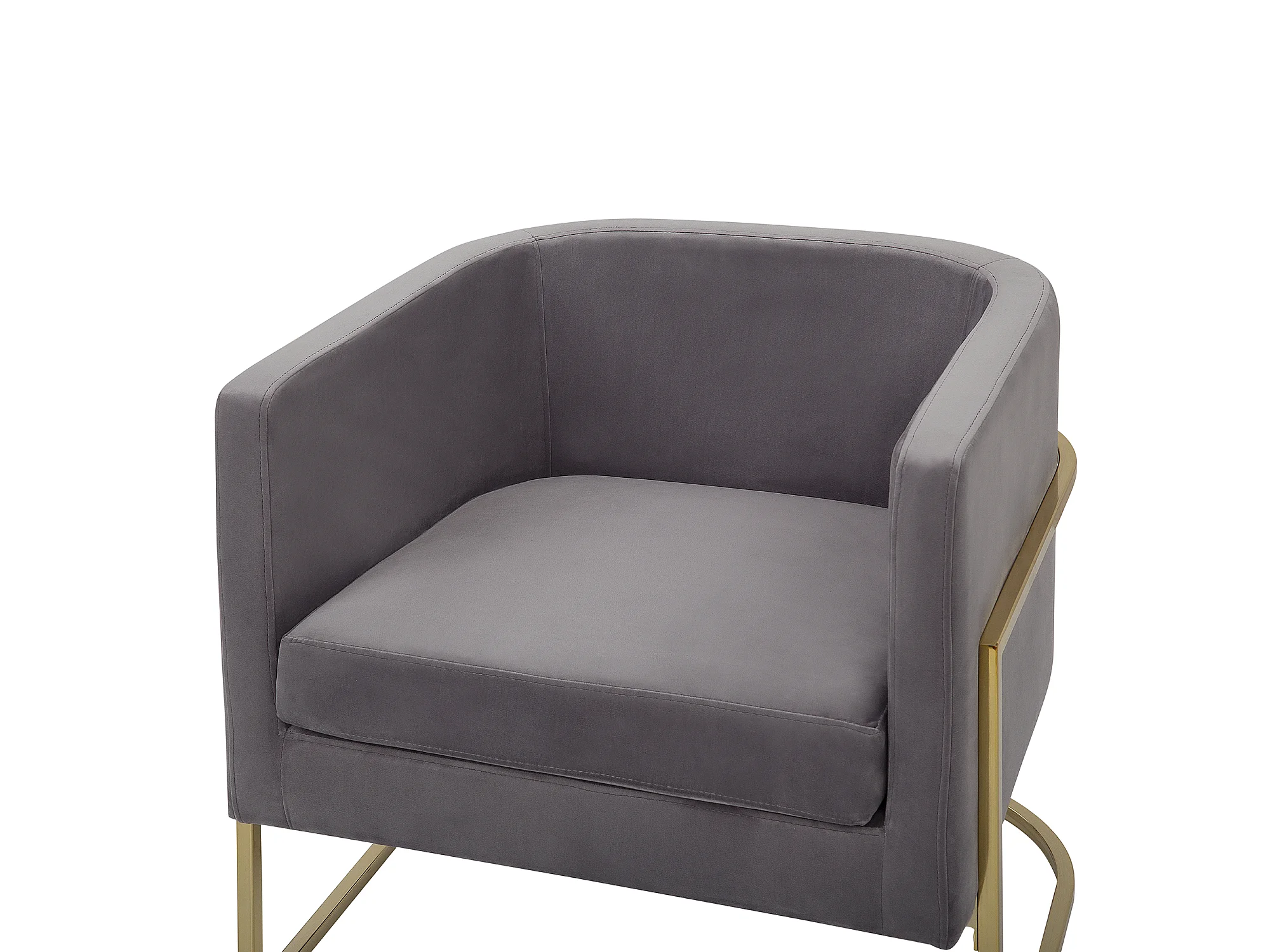 Halbrunder Sessel aus Samtstoff in Grau Metallgestell in Gold Sirkka