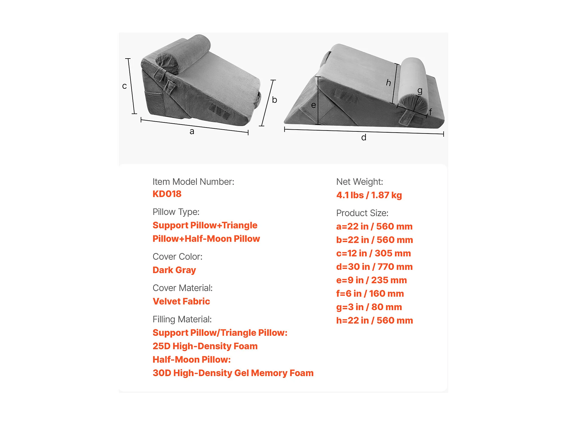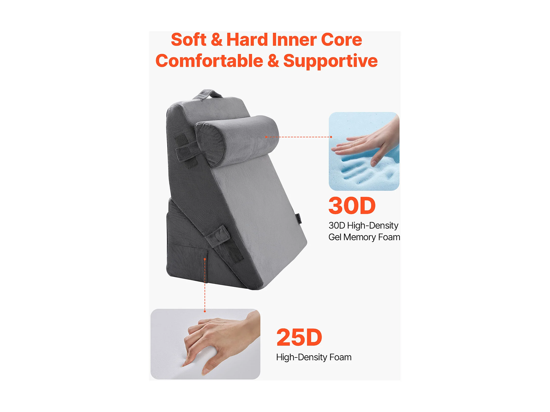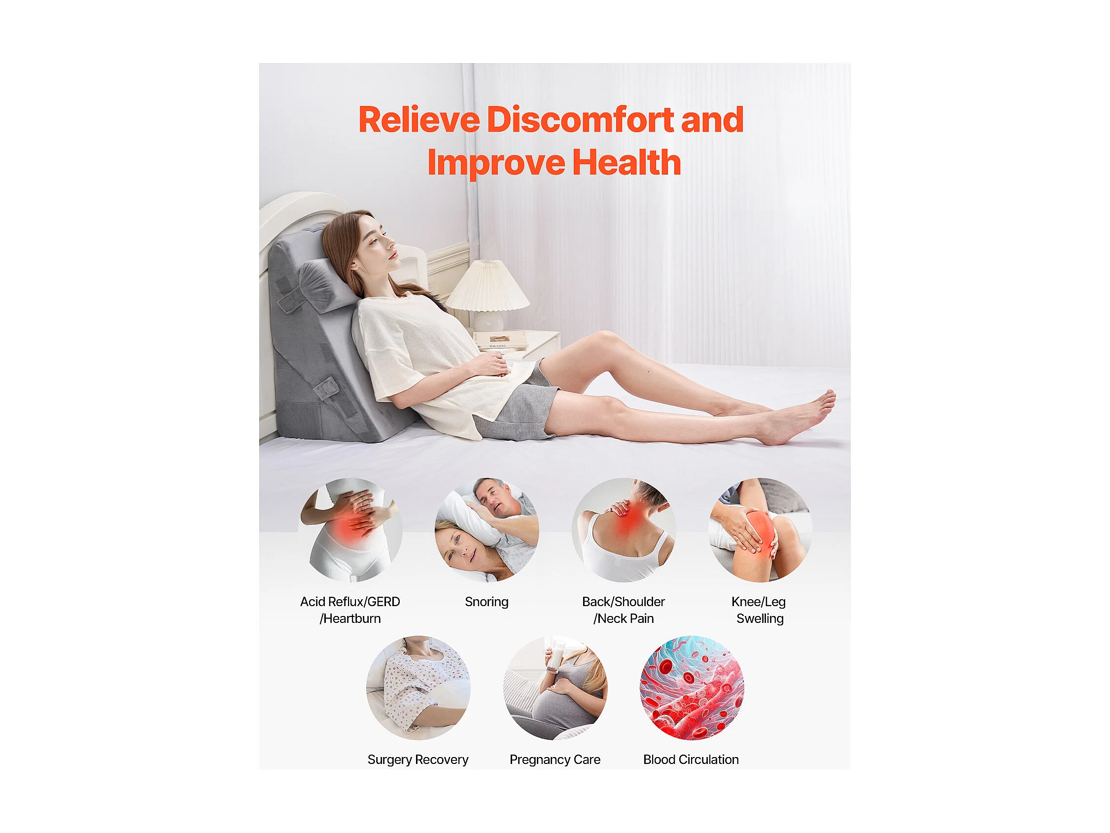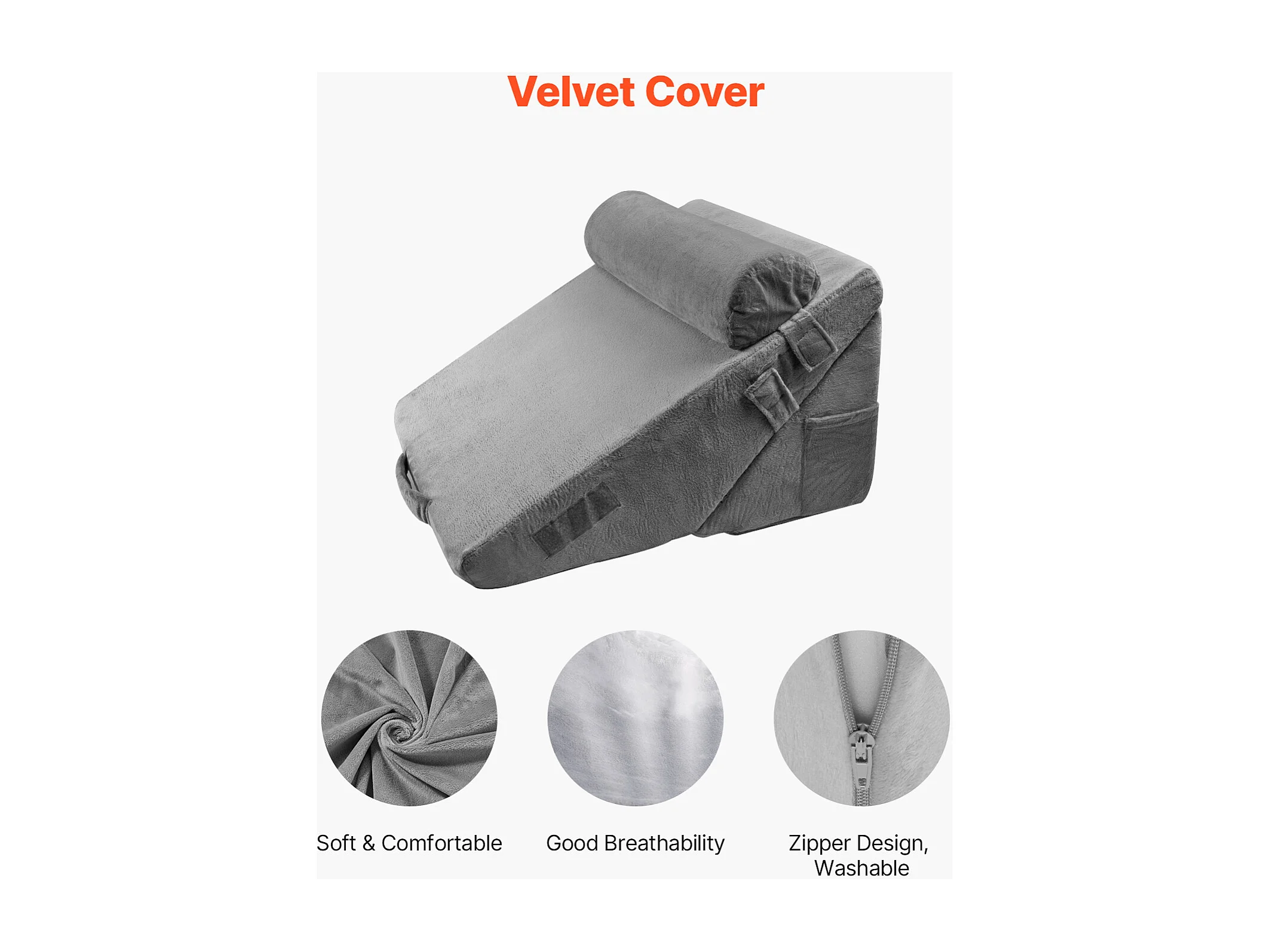 Set aus 3 Verstellbaren Bettkissen SucceBuy, Orthopädische Schaumstütze, Waschbare Hülle, Postoperatives Kissen, Dunkelgrau
