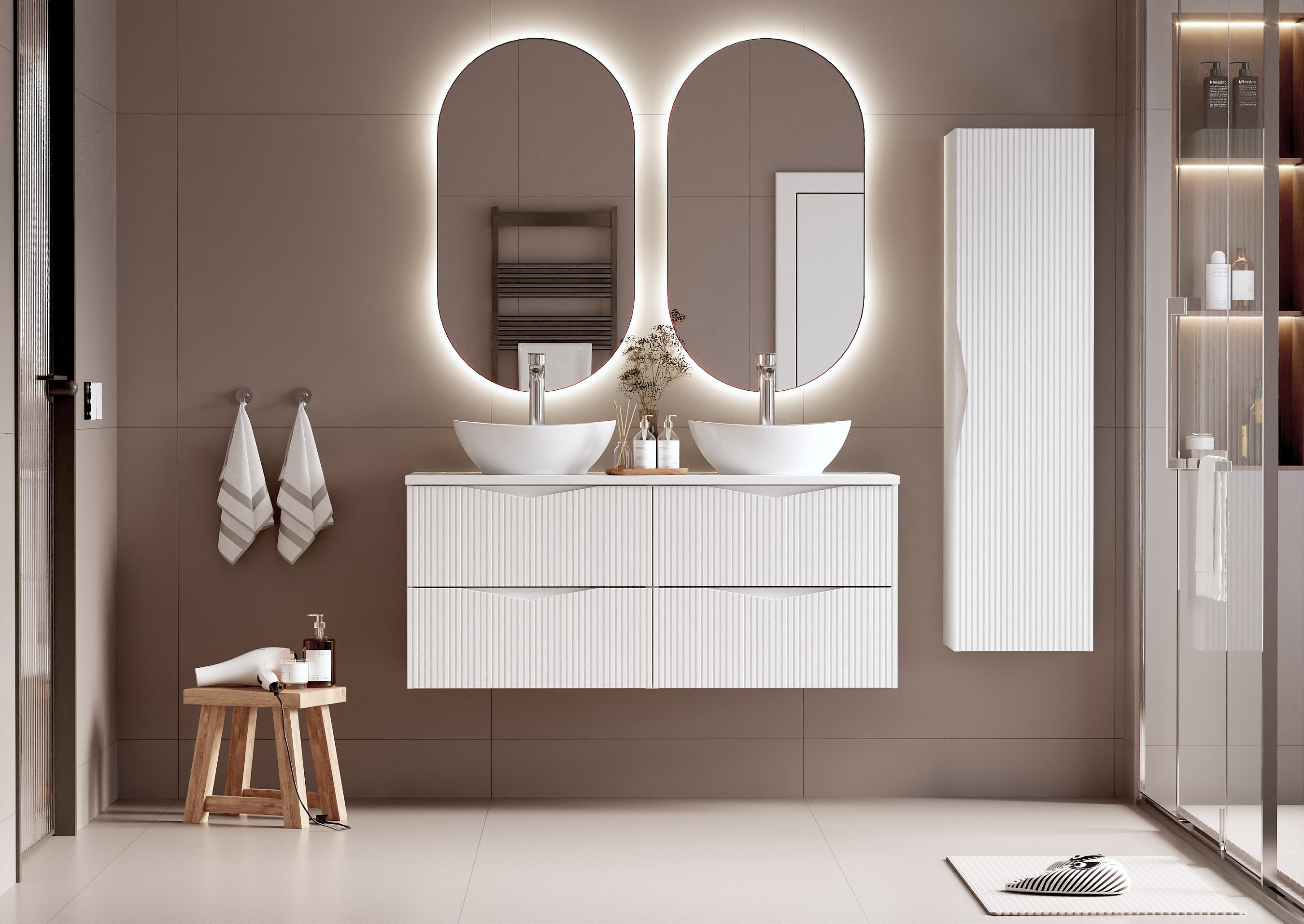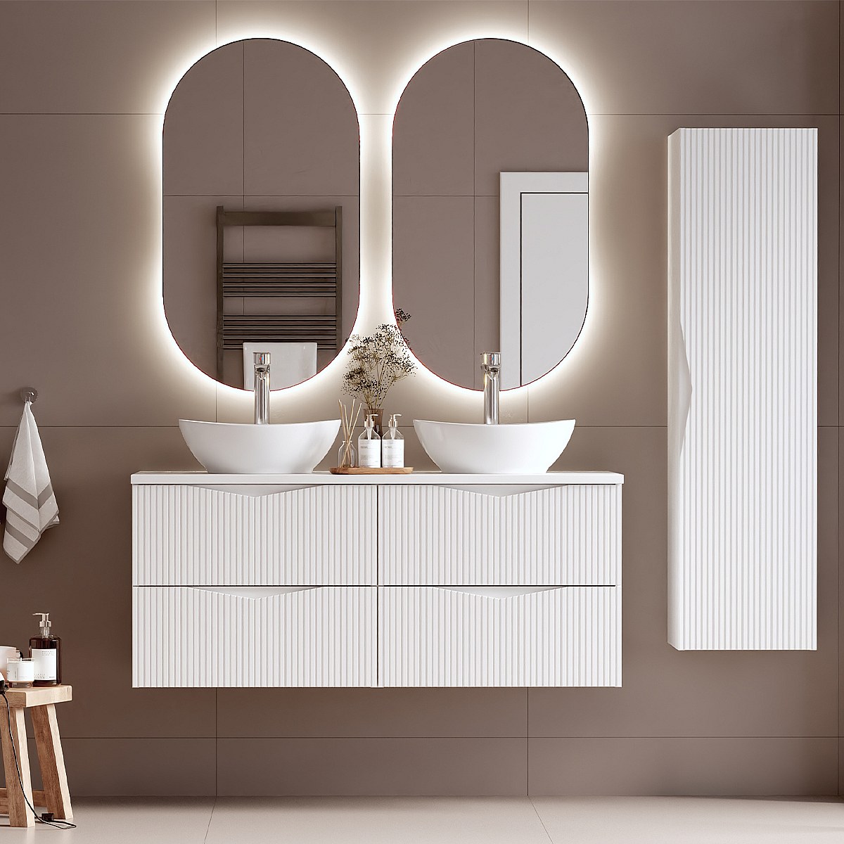 Doppeltes Einbauwaschbecken 120cm und Lexa Säule Weiß