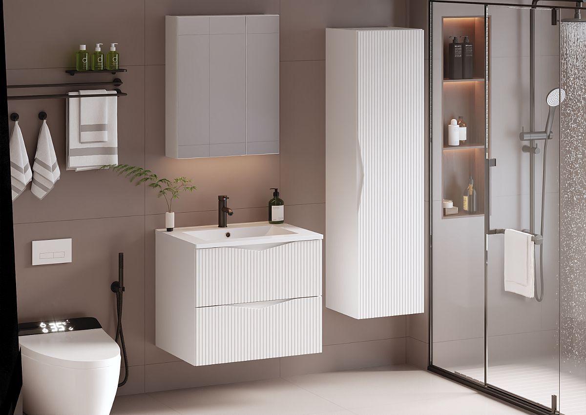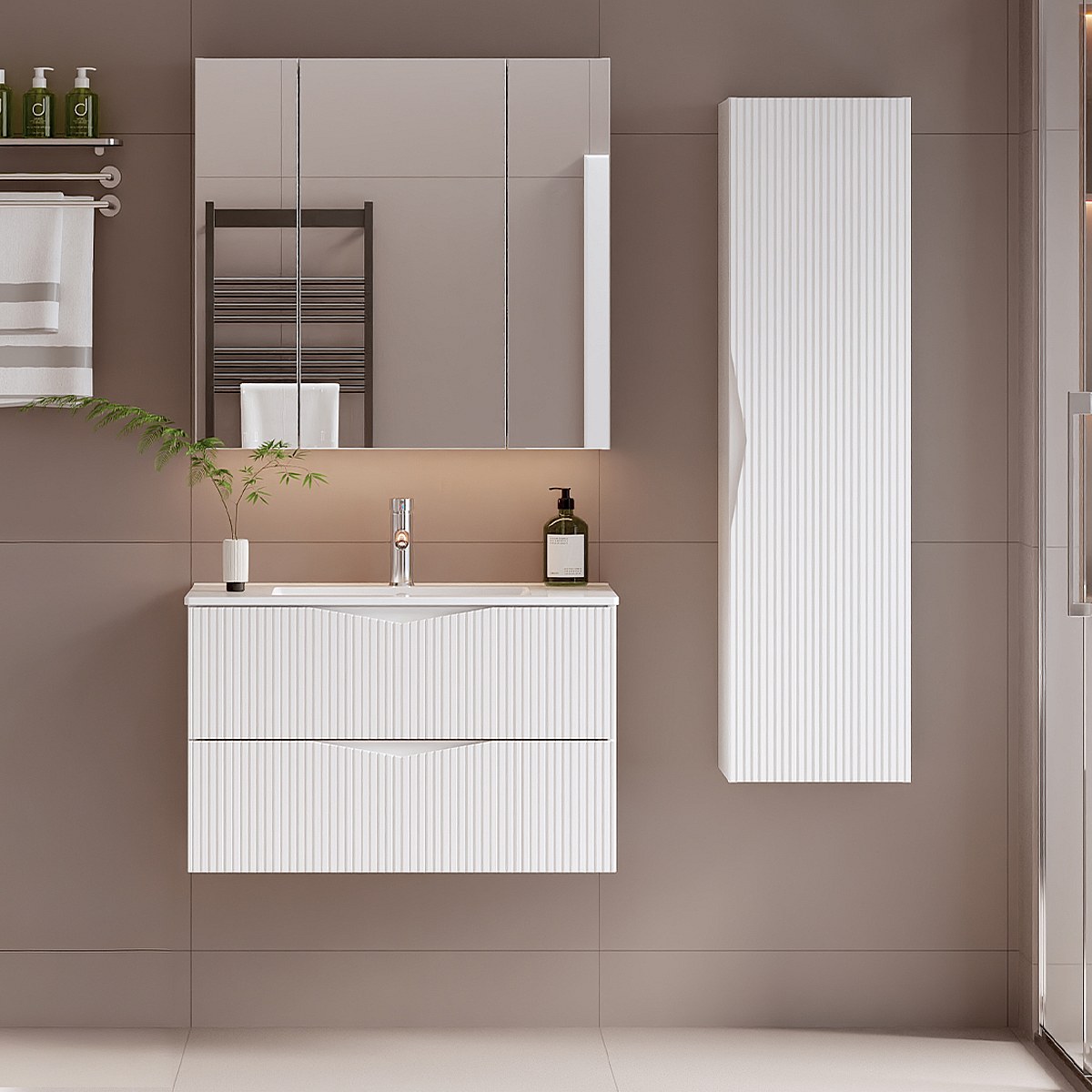 Set aus Einzelmöbel, Einbauwaschbecken 80cm und Säule Tao Weiß