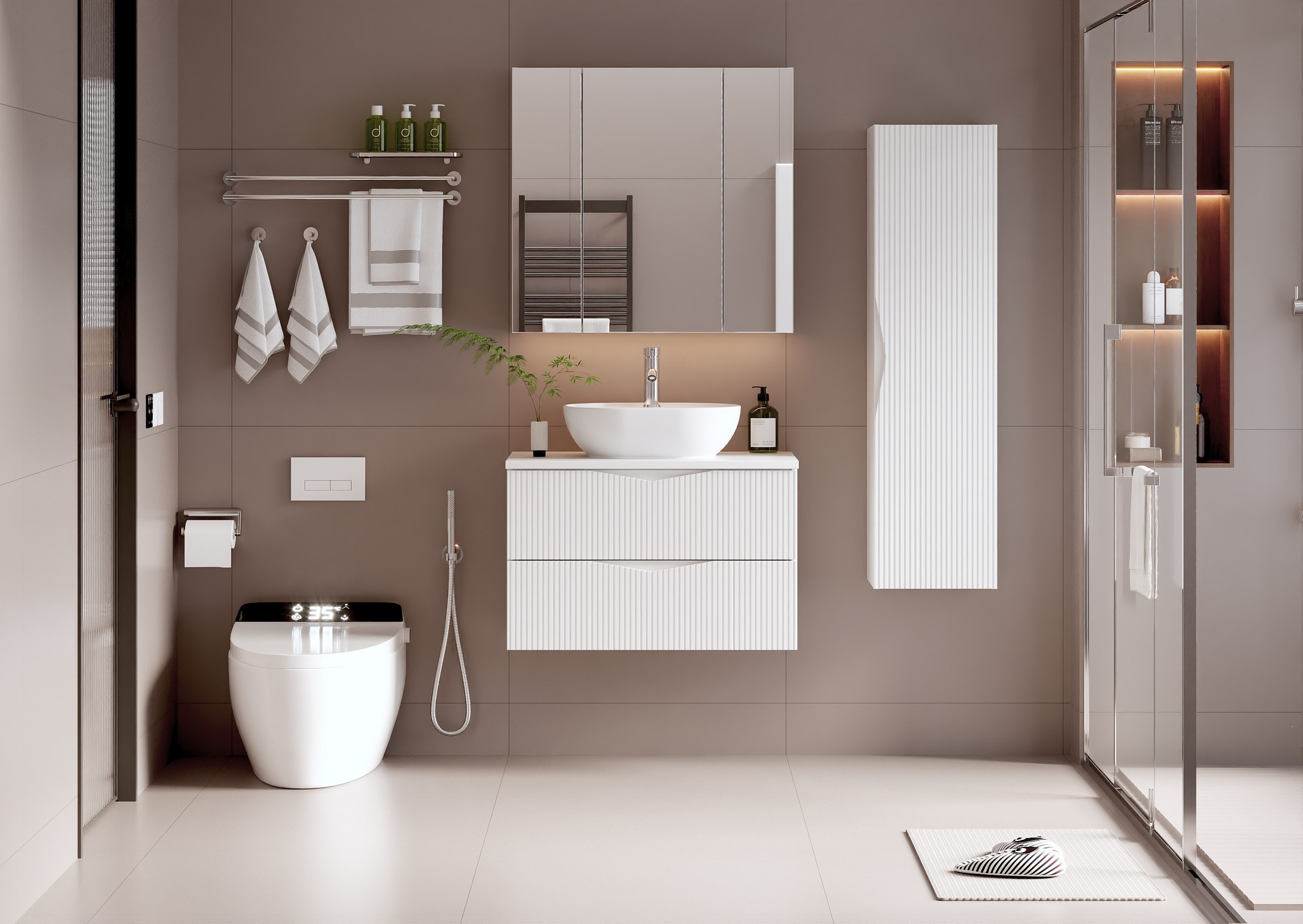 Set Waschtisch 80cm 2 Nischen und Säule Tao Weiß