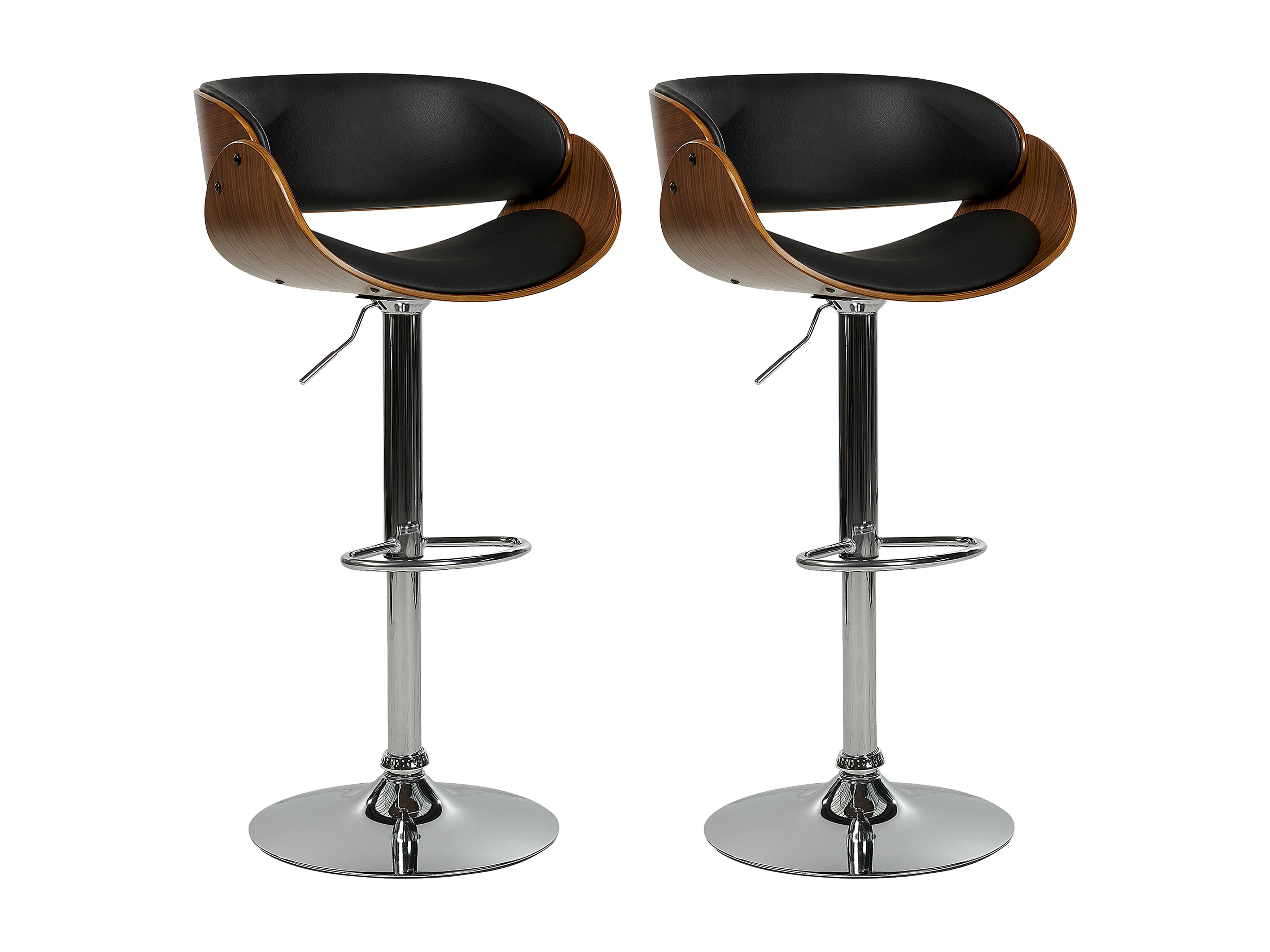 Barhocker Kunstleder schwarz höhenverstellbar mit Gestell silber Fußstütze Baku