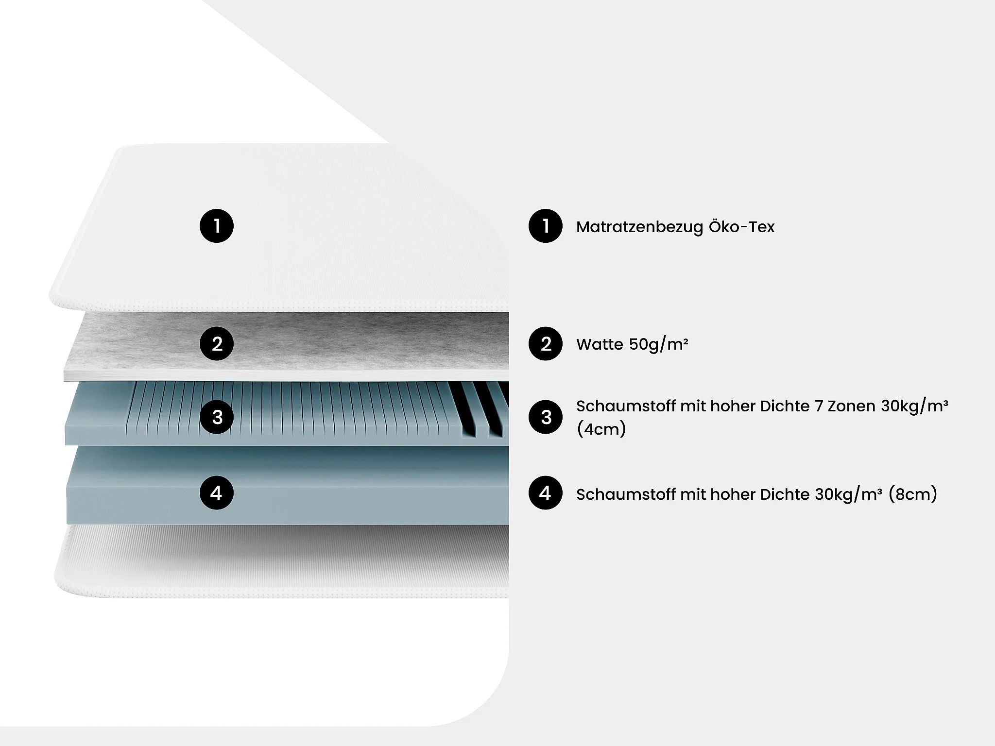 Set Untergestell + 7-Zonen-Schaumstoffmatratze - 90 x 190 cm - Stärke 12 cm - Weiß - STELO KIDS von YSMÉE