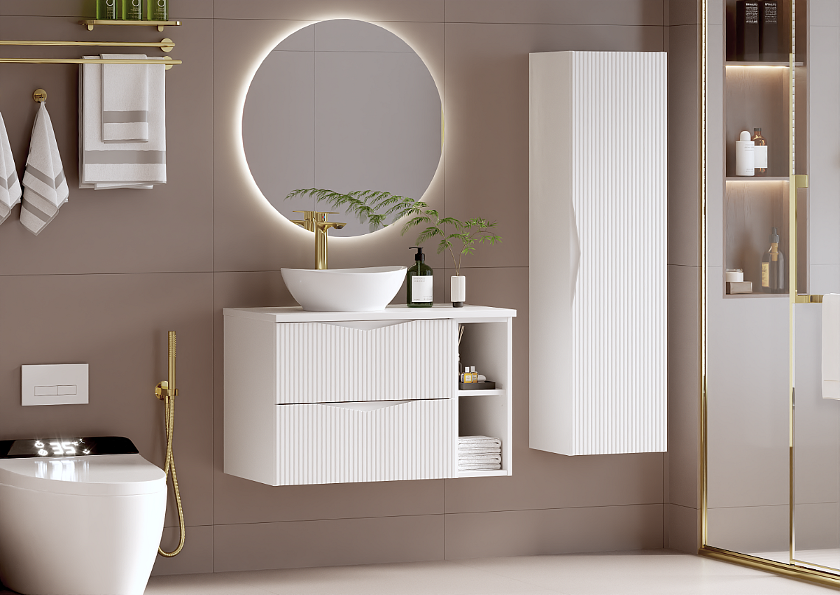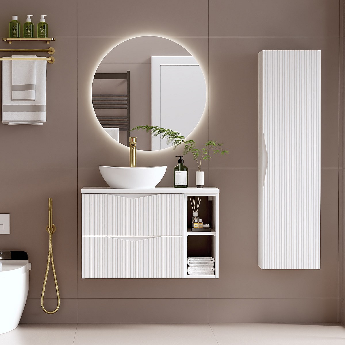 Set Waschtisch 80cm 2 Nischen und Säule Tao Weiß