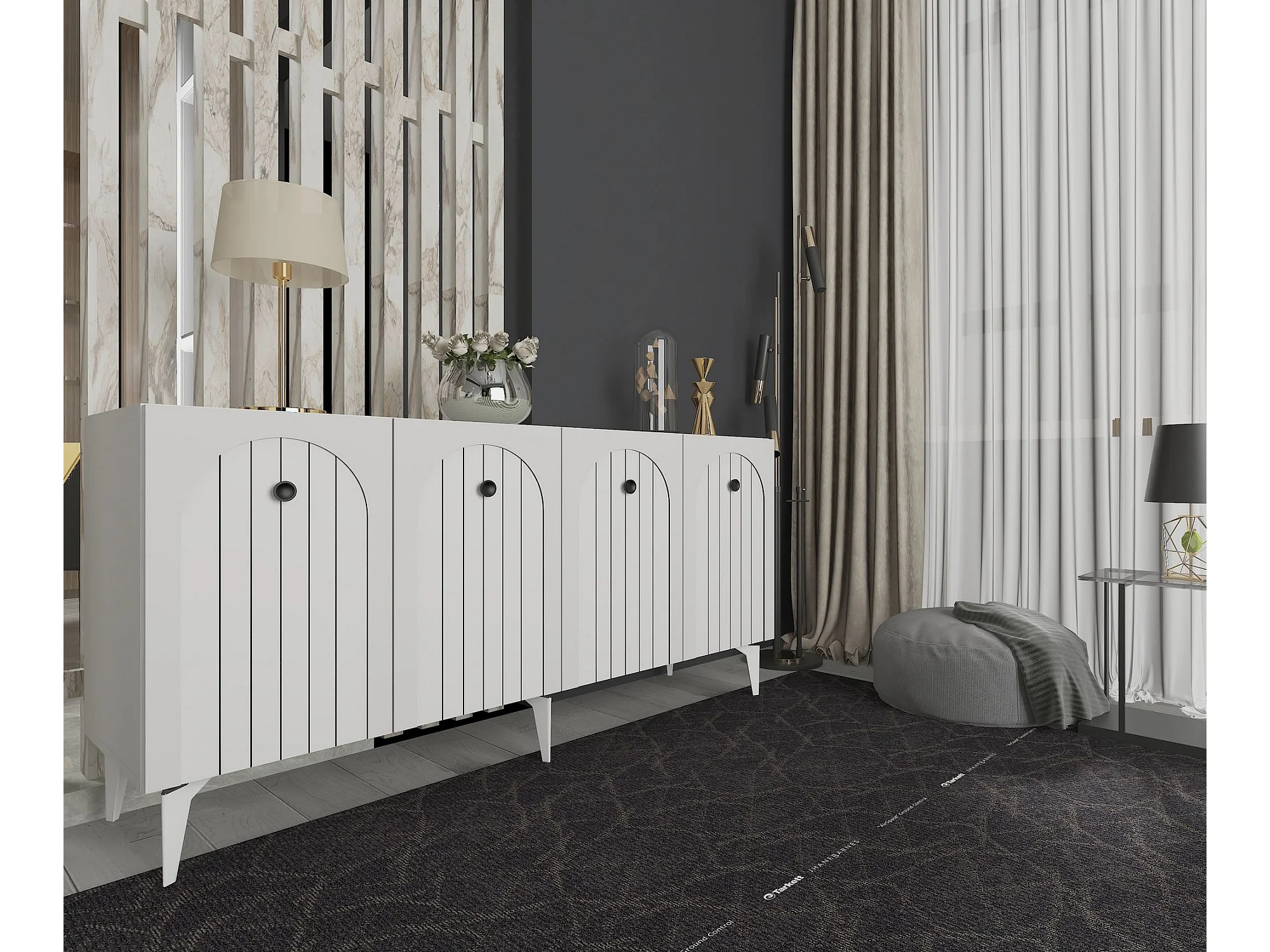Sideboard aus melaminbeschichteter Spanplatte – 150 cm – Weiß und Silber