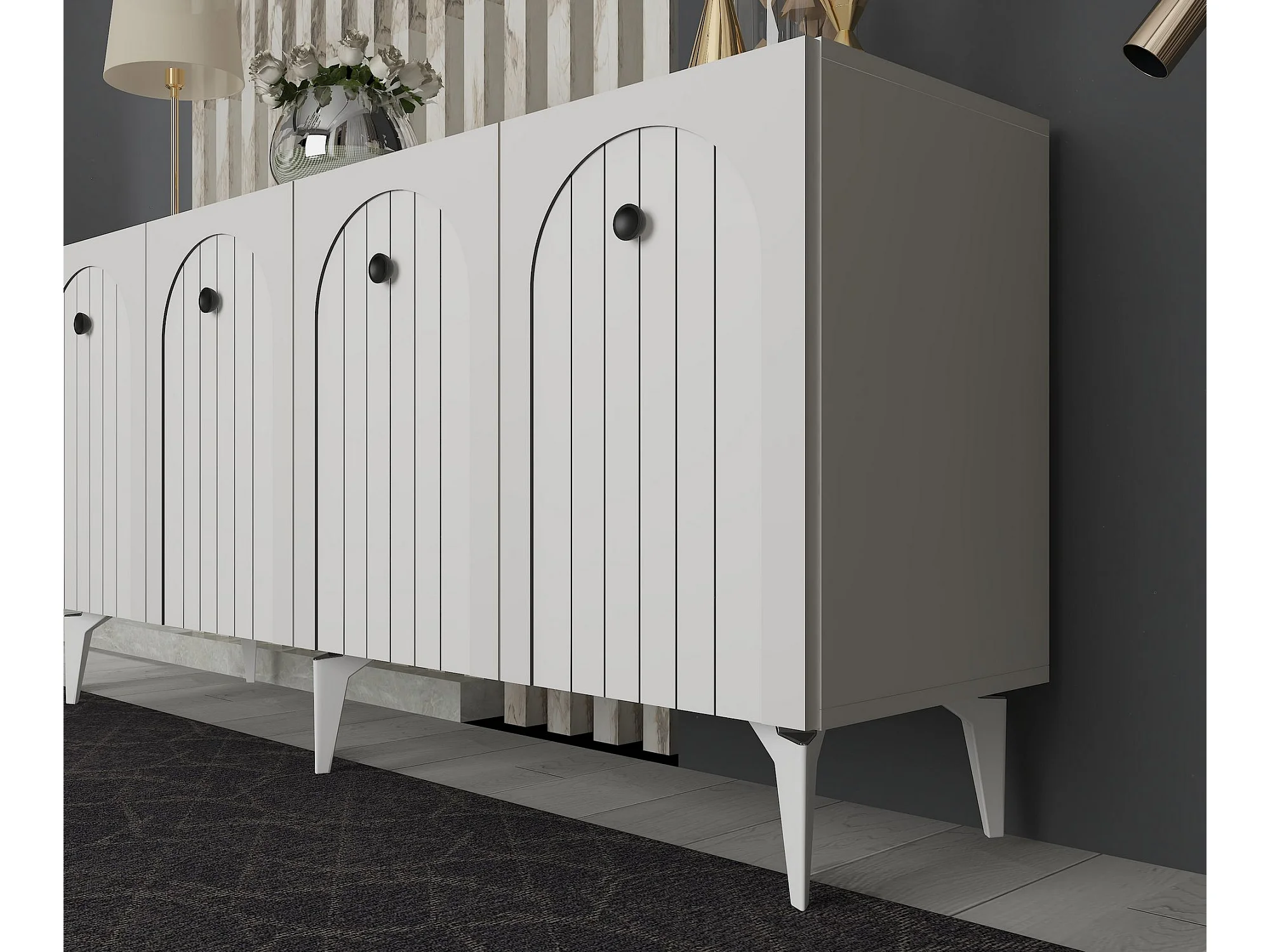 Sideboard – 150 cm – Weiß und Silber – Spanplatte