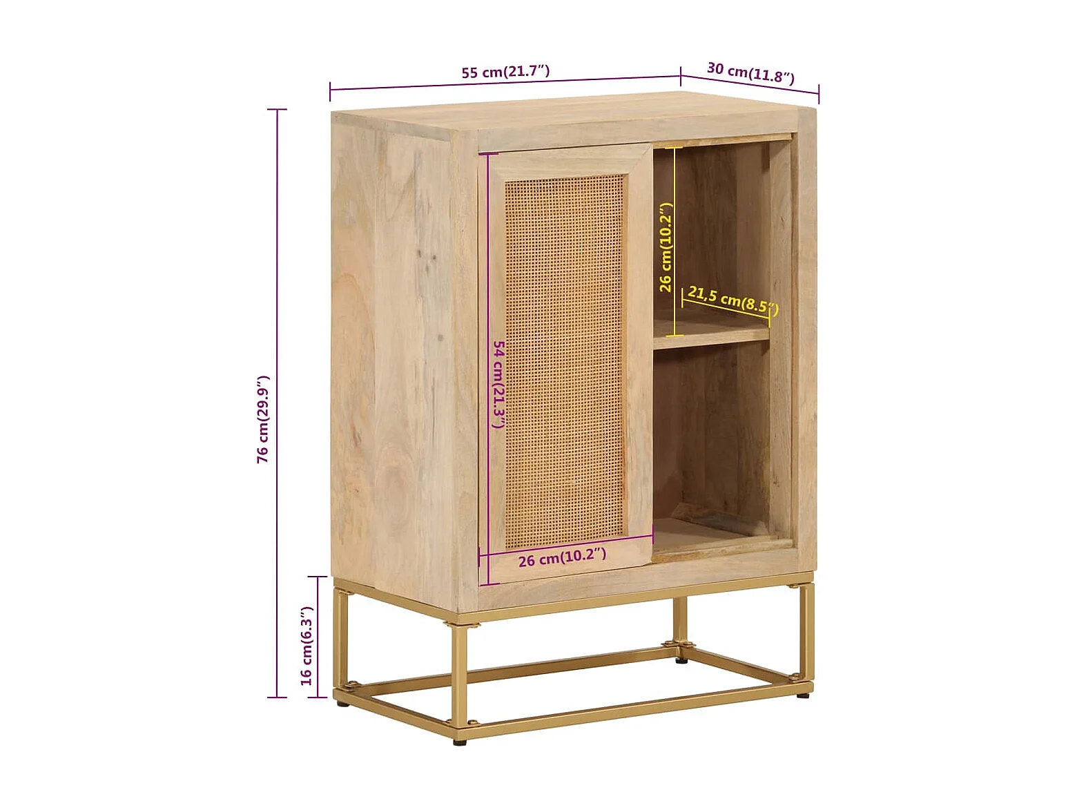 Sideboard 55x30x76 cm Massivholz Mango und Eisen