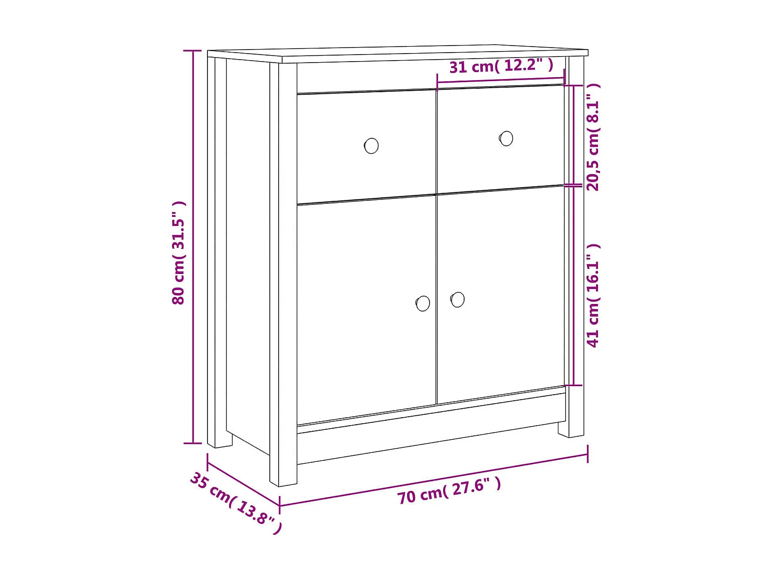 Sideboard 70x35x80 cm Massivholz Kiefer