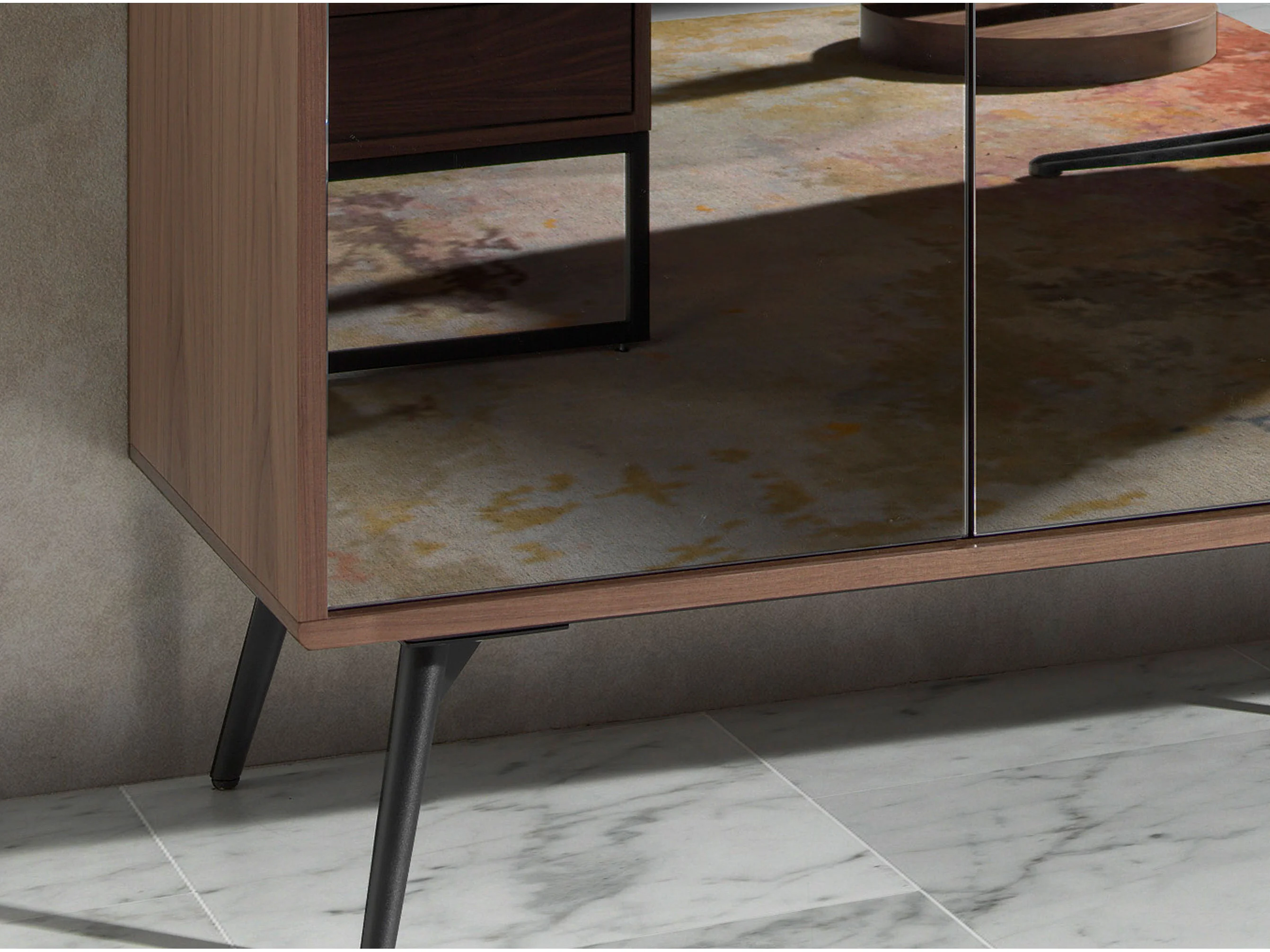 Sideboard aus schwarzem Glas mit Spiegeleffekt, Walnuss und schwarzem Stahl 3061 ANGEL CERDA