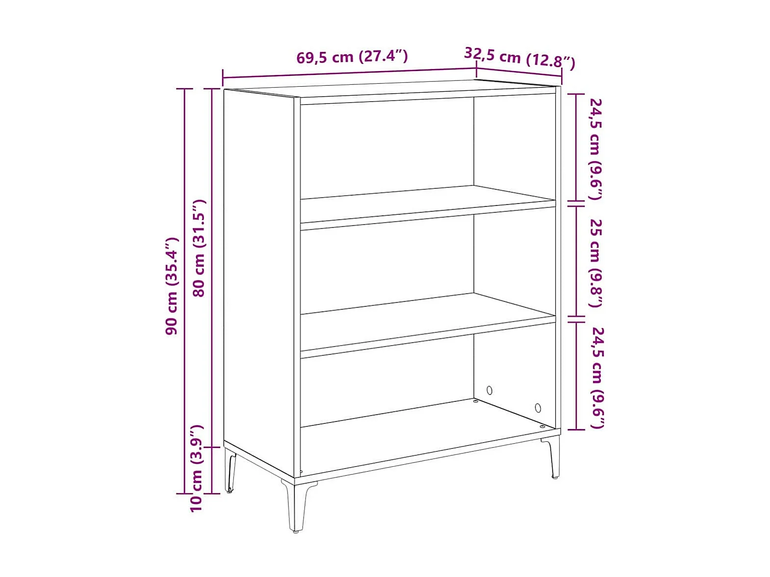 Sideboard aus schwarzer Eiche, 32,5 x 69,5 x 90 cm, Holzwerkstoff