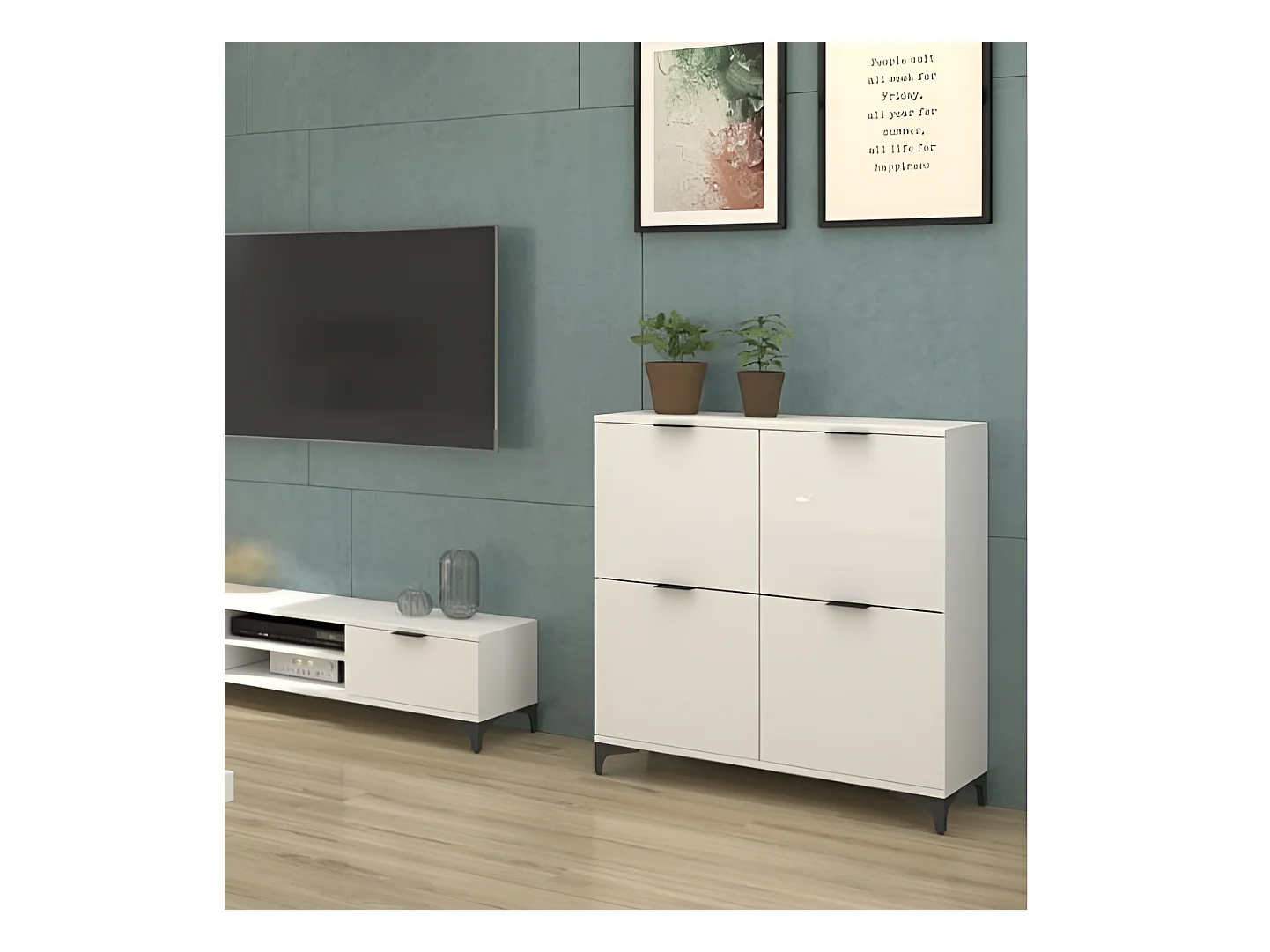 Glänzend weißes Sideboard 100x36x60 cm Holzwerkstoff