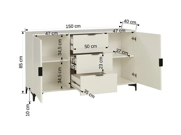 Sideboard Leni/Schubladen/Möbelplatte/Weiss