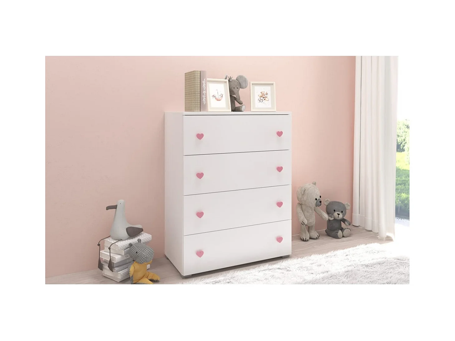 Sideboard Liva/Schubladen/Möbelplatte/Weiss&Pink