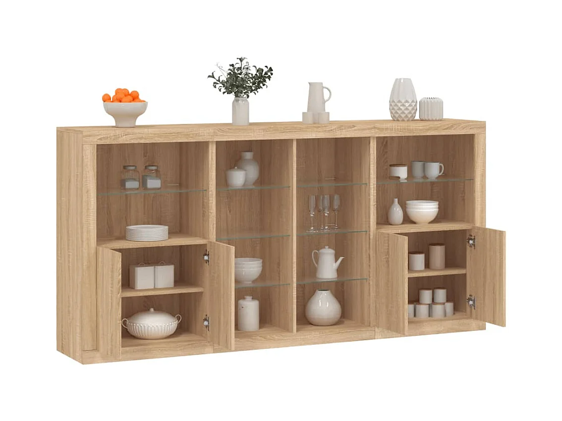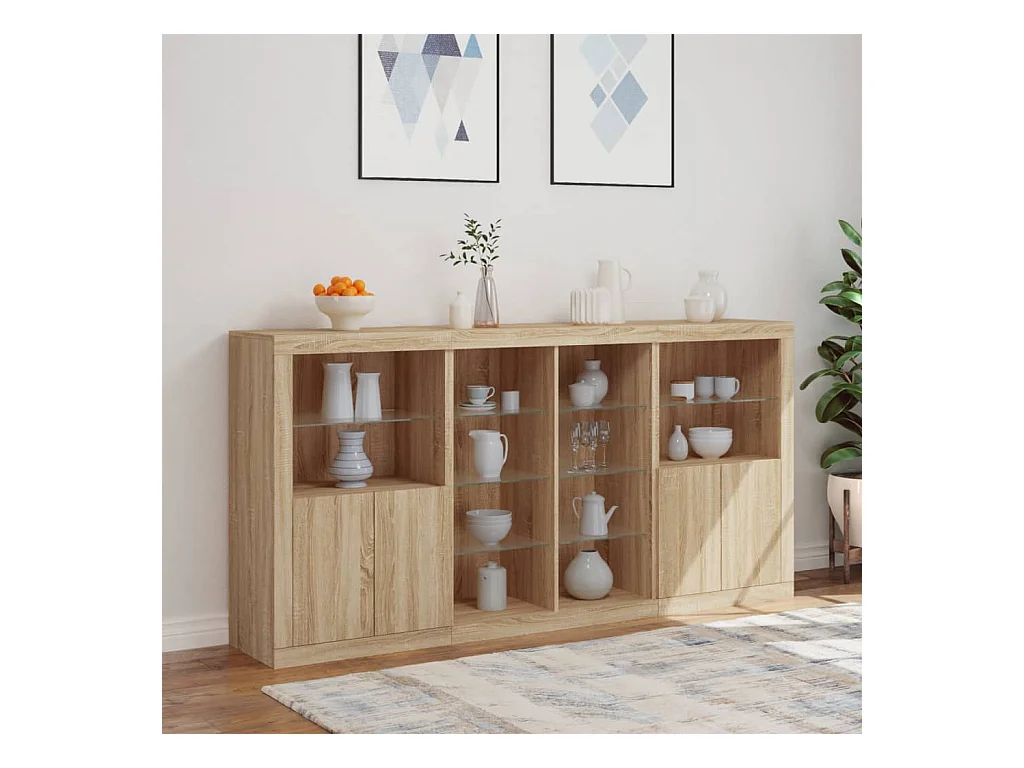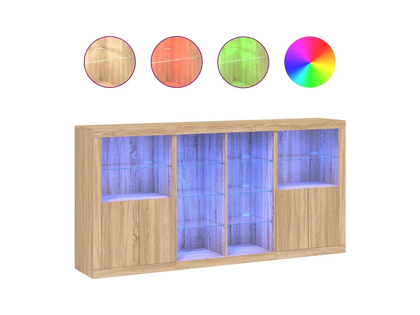 Sideboards mit LED-Beleuchtung 3-teilig Sonoma Eiche Holzwerkstoff