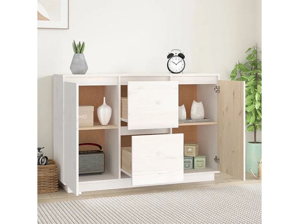 Sideboard Weiß 111x34x75 cm Massivholz Kiefer