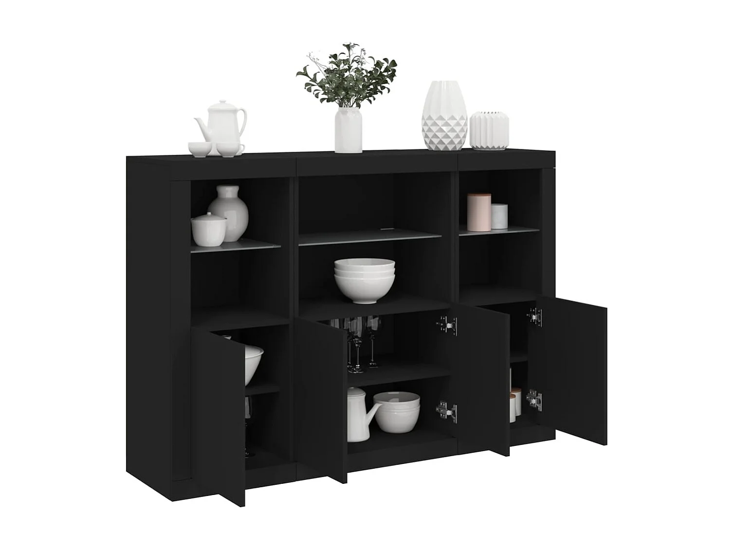 Sideboards mit LED-Leuchten 3 Stk. Schwarz Holzwerkstoff