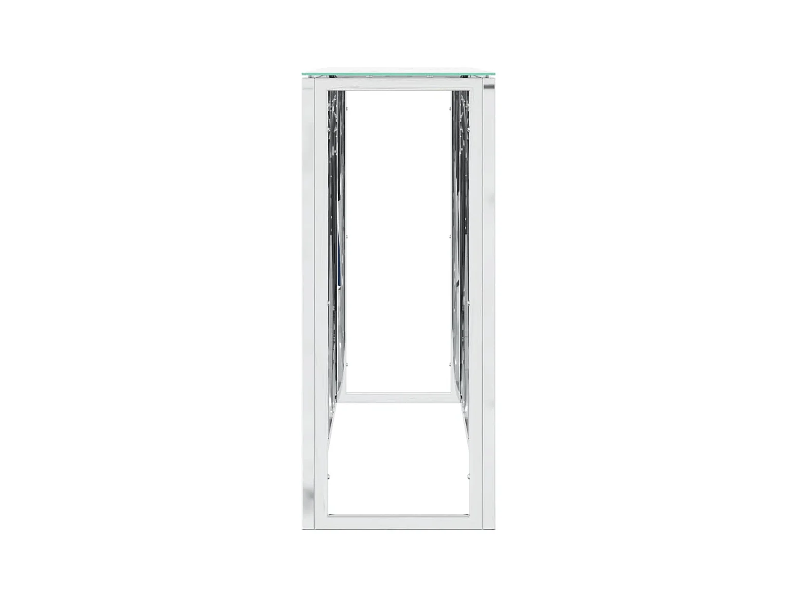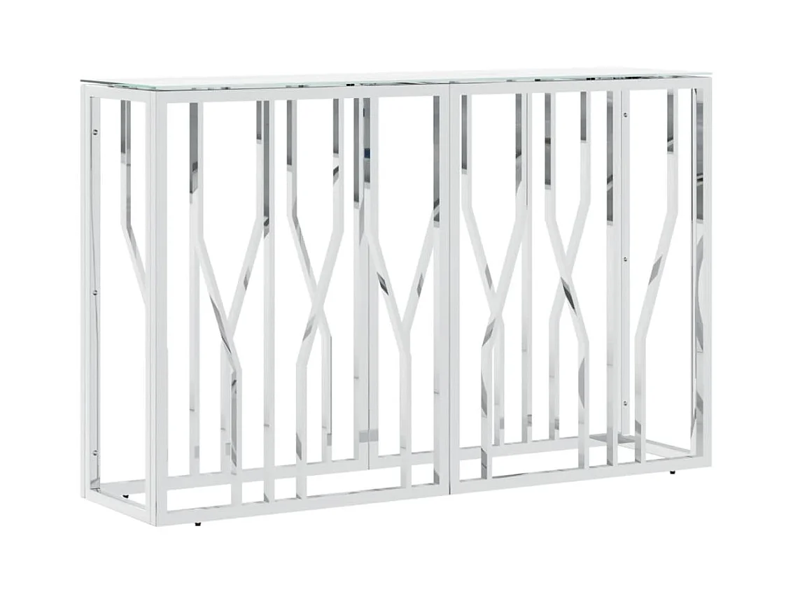Silberner Konsolentisch 110x30x70 cm, Edelstahl und Glas