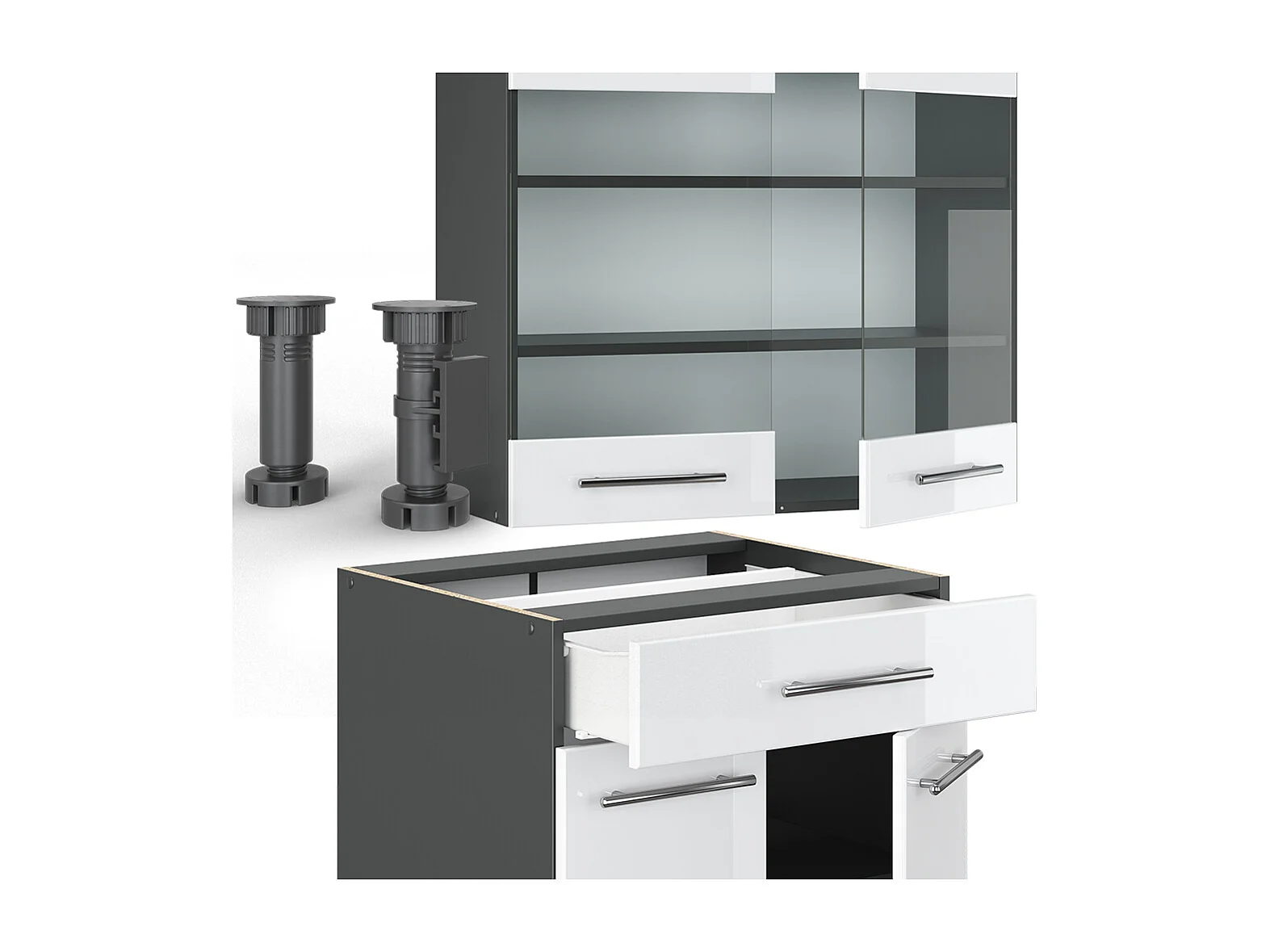 Singleküche anthrazit hochglanz/weiß 140x60x81.6 r-line