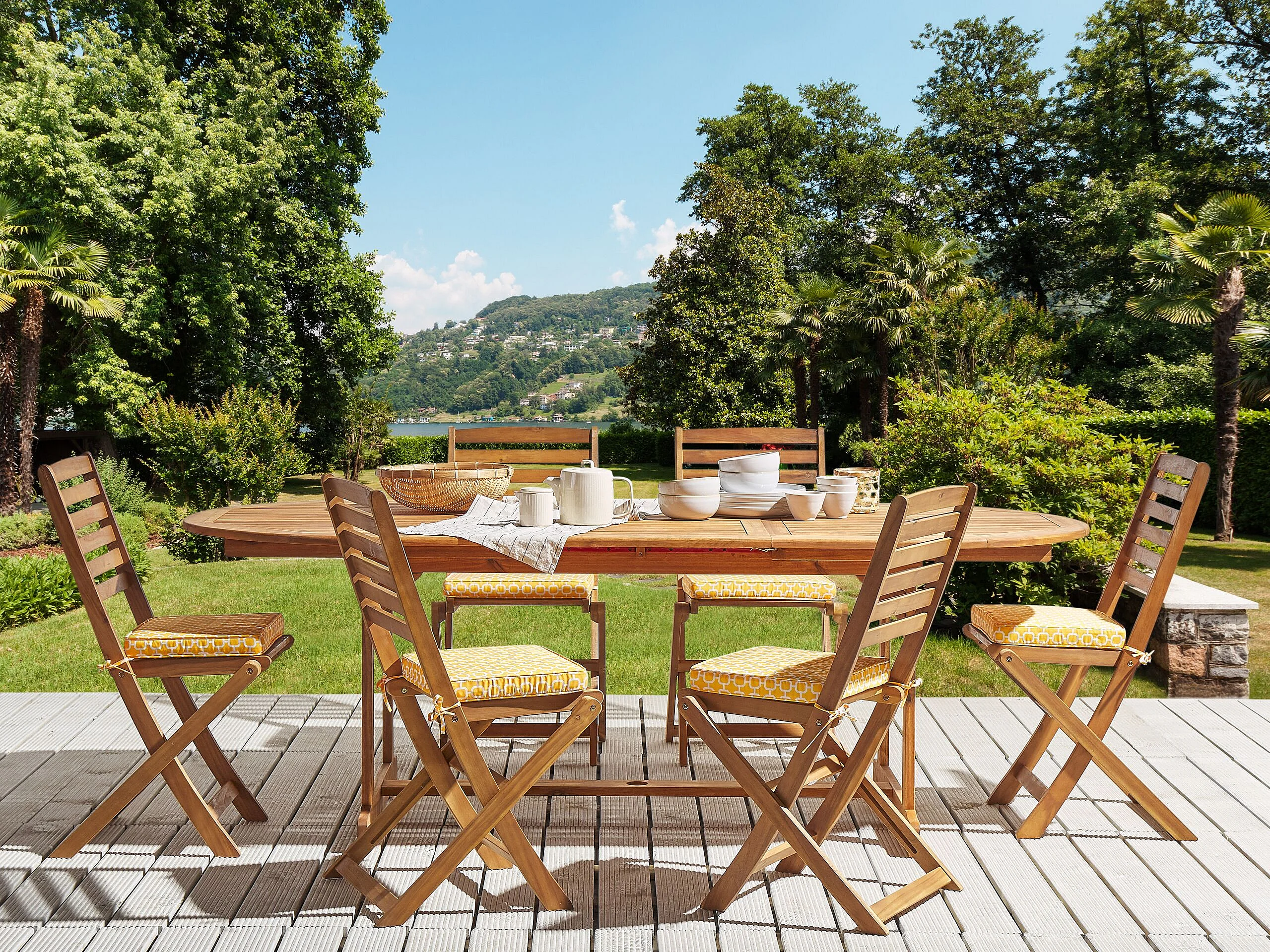 Outdoor-Sitzkissen 6er Set gelb / weiß geometrisches Motiv für Gartenstuhl Tolve