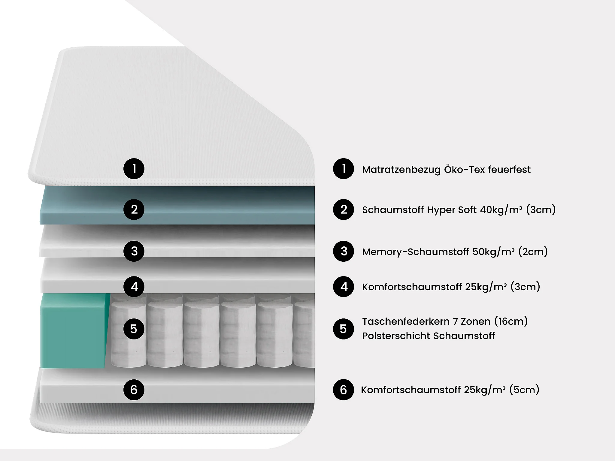 • 7-Zonen-Taschenfederkern + Hyper Soft Memory-Schaum