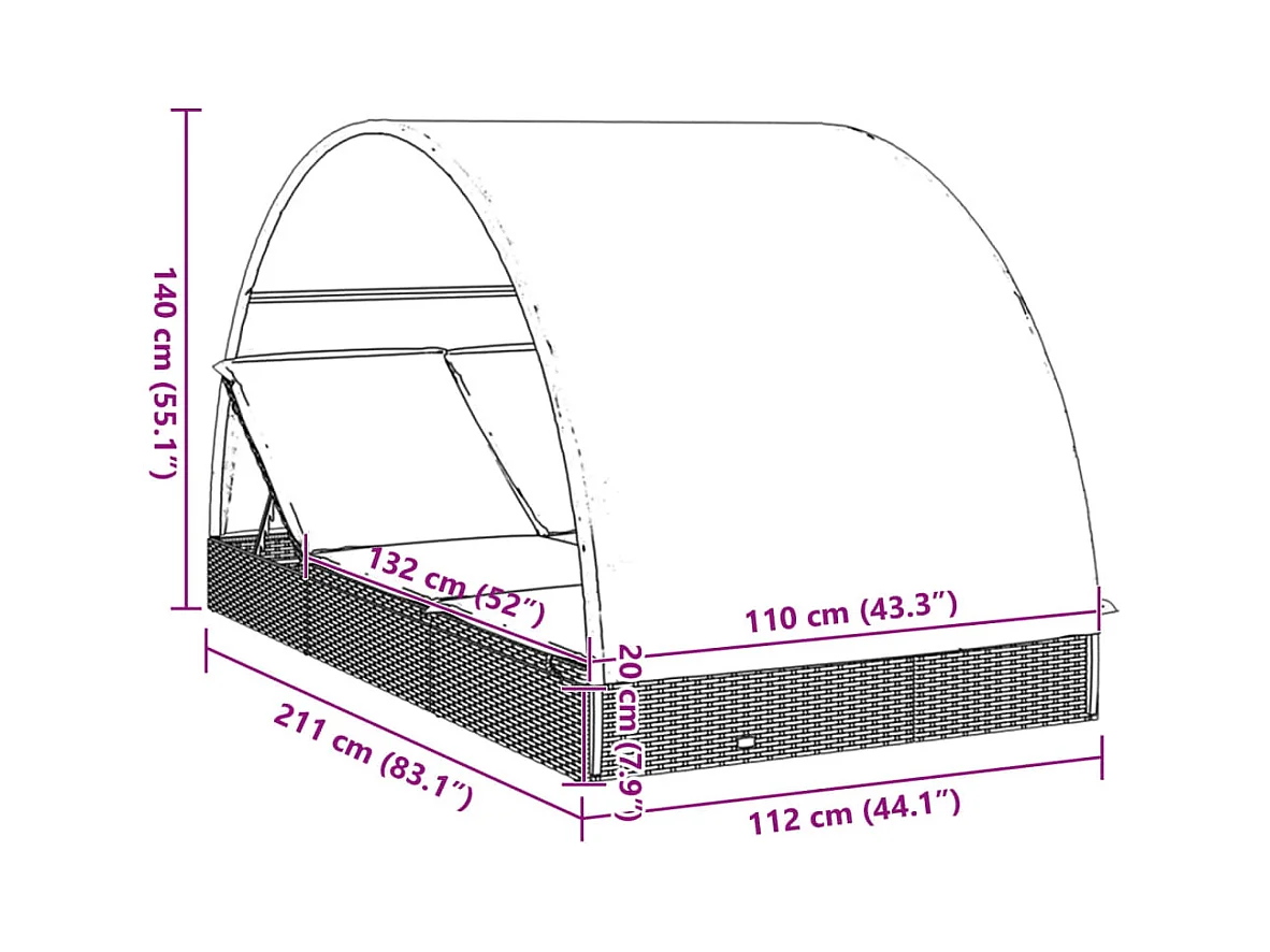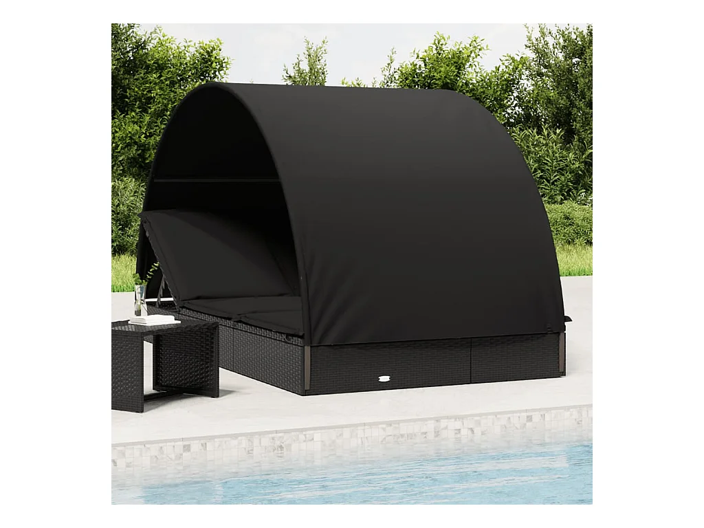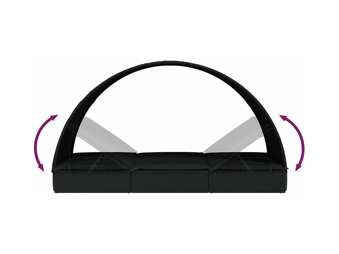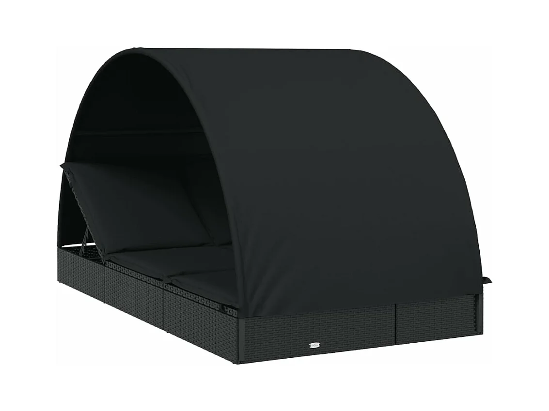 Sonnenliege für 2 Personen mit Runddach Schwarz 211x112x140 cm