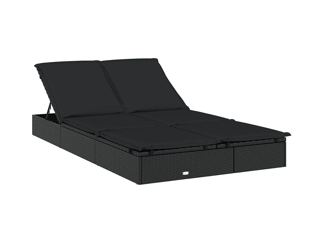 Doppel-Sonnenliege mit Kissen Schwarz Poly Rattan
