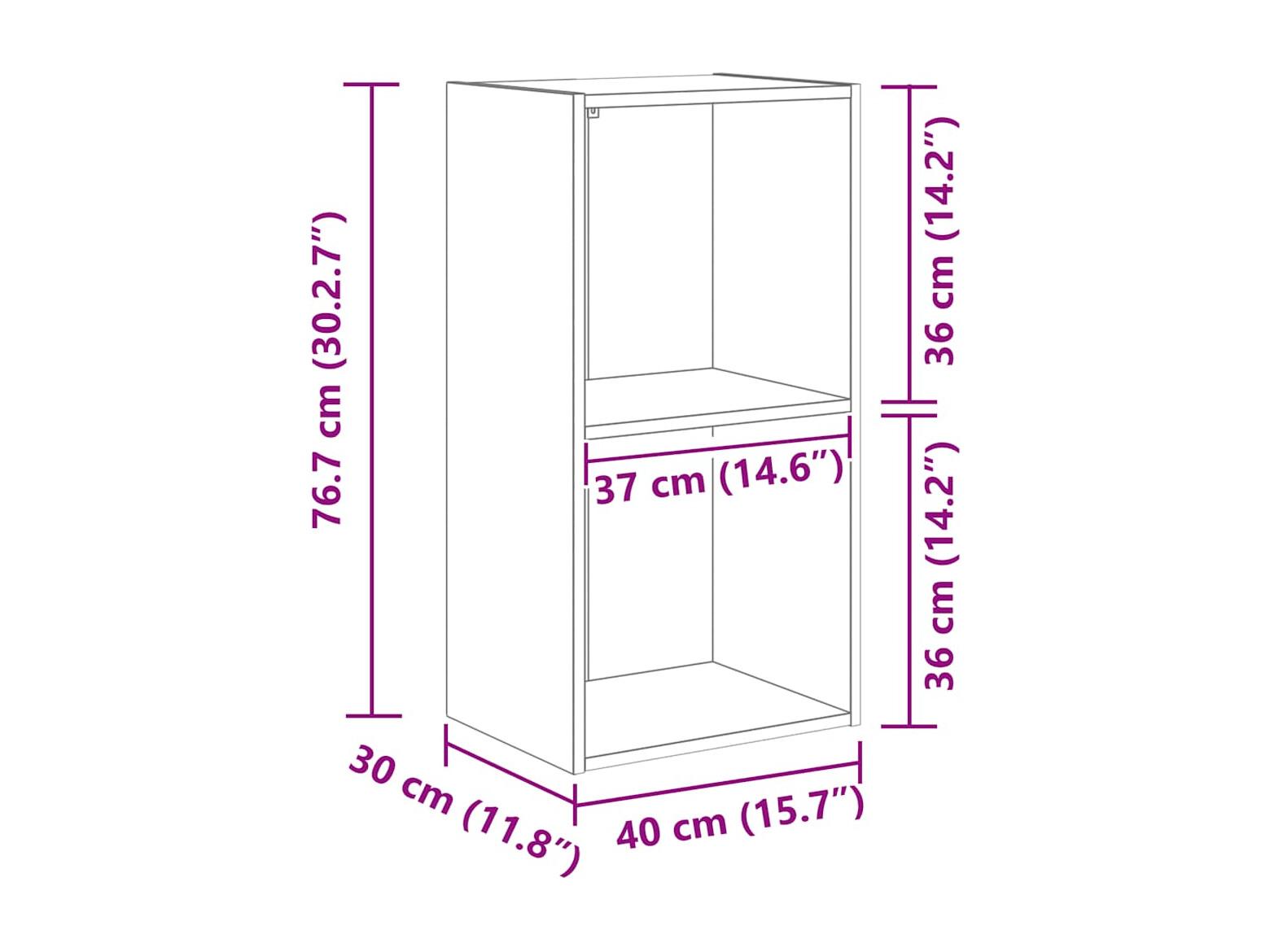 Sonoma Grau 2-stöckiges Bücherregal 40x30x70cm Holzwerkstoff