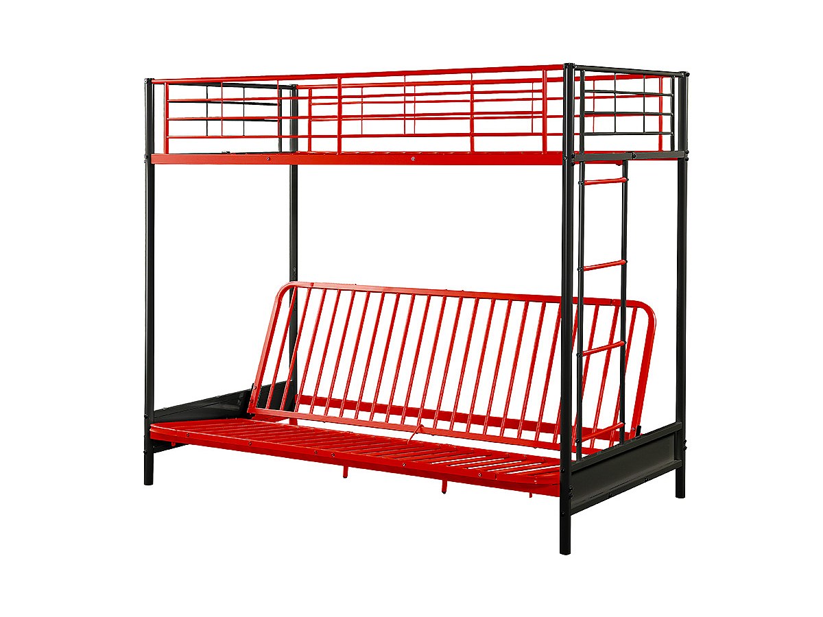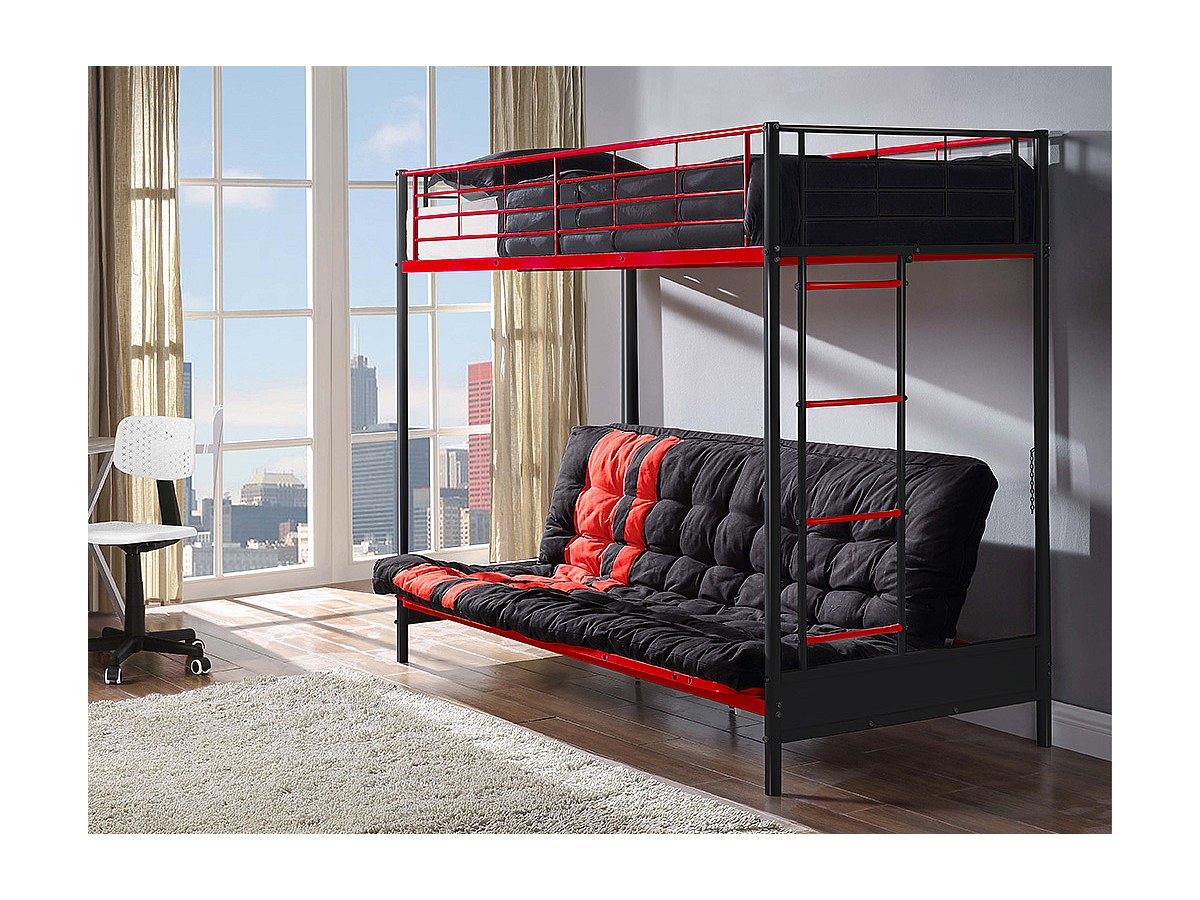 Hochbett mit Schlafsofa MODULO IV - 90 x 190 cm - Metall - Schwarz & Rot + Futonmatratze 135 x 190 cm