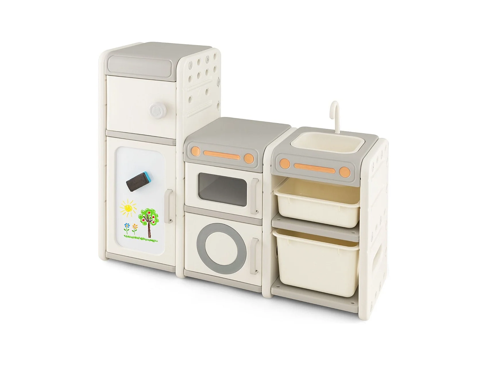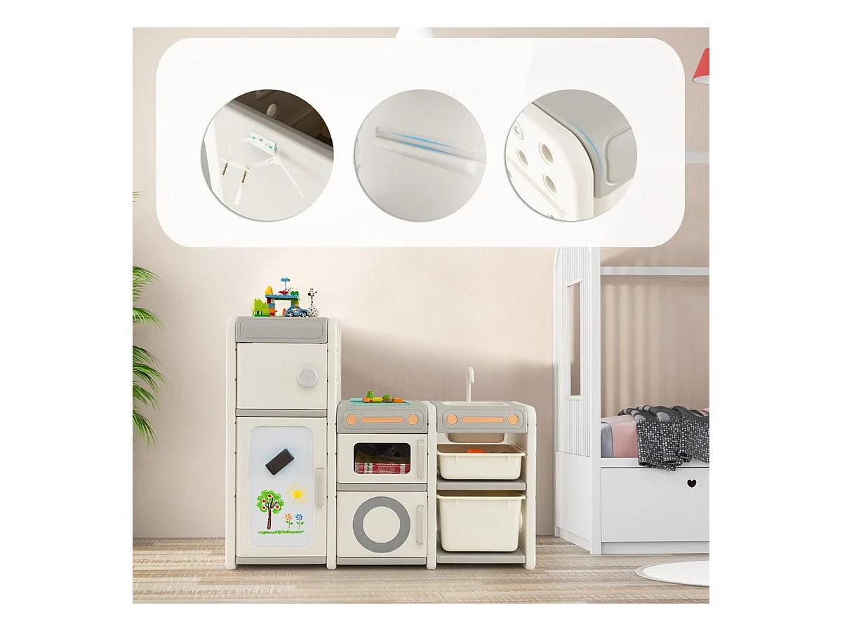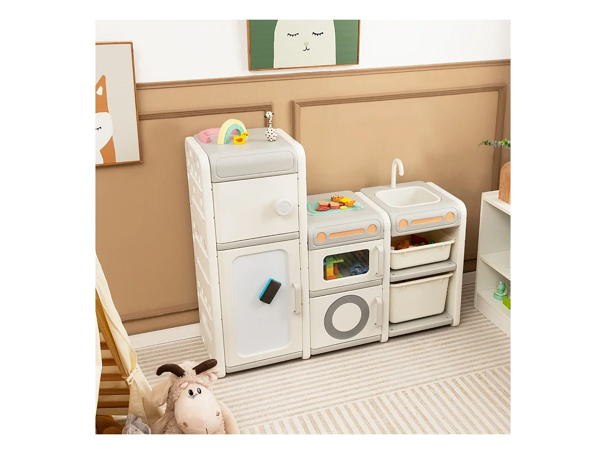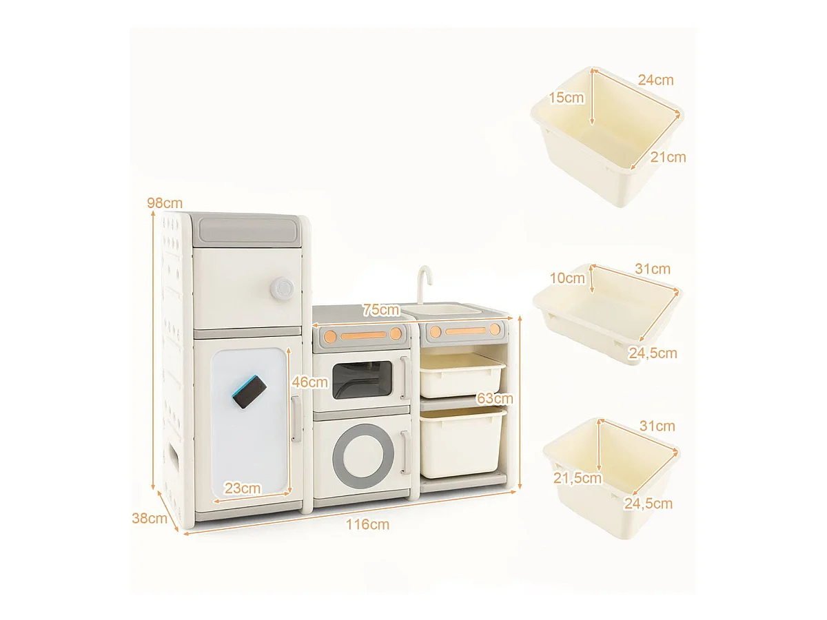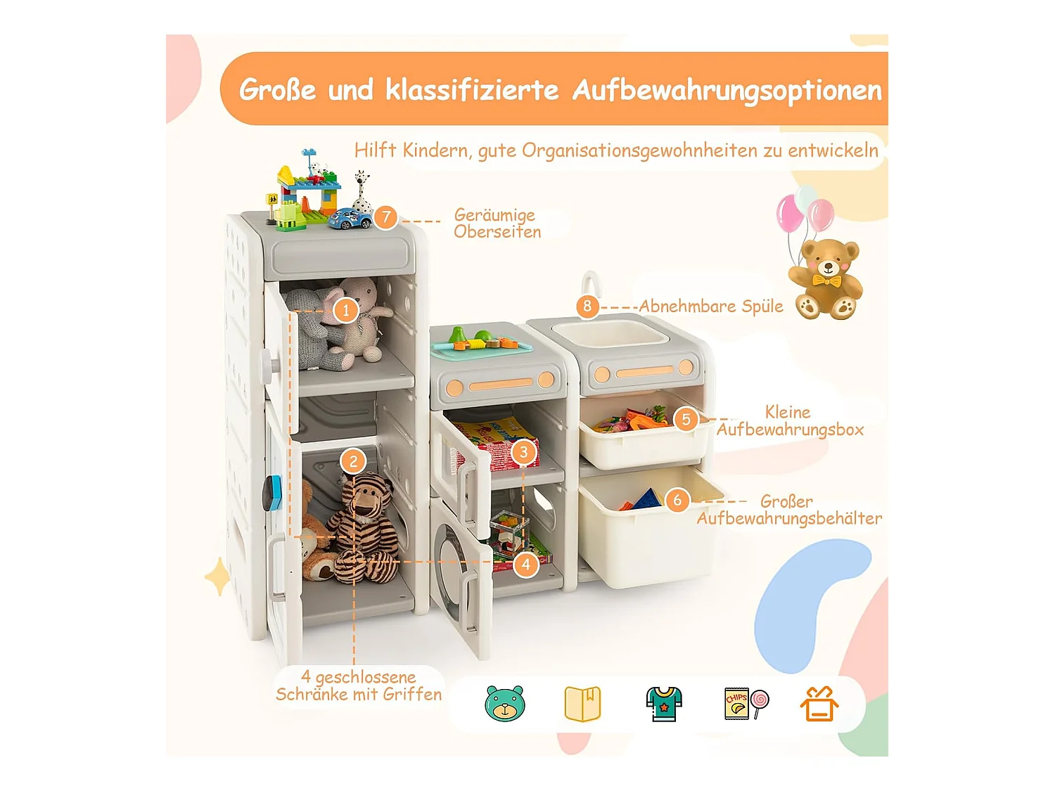 Kinder Spielzeugschrank mit Magnetischem Whiteboard & Abnehmbarem Waschbecken & Wasserhahn
