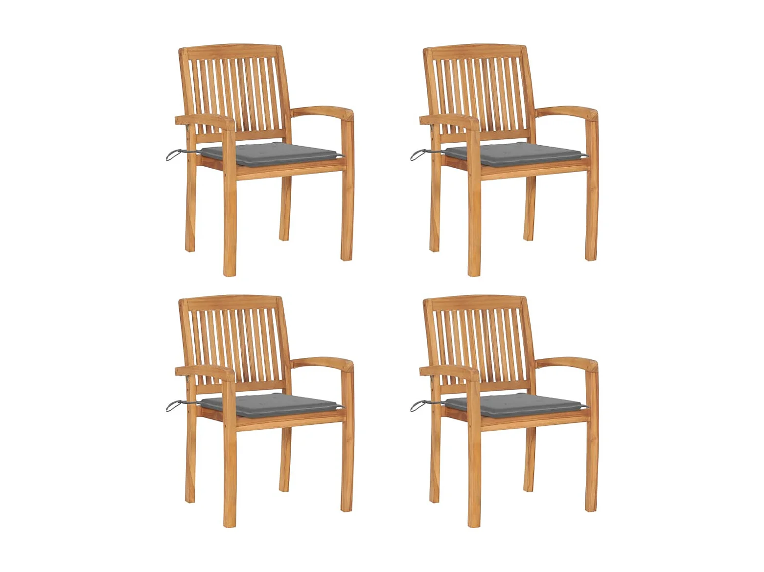 Stapelbare Gartenstühle mit Kissen 4er Set aus massivem Teakholz