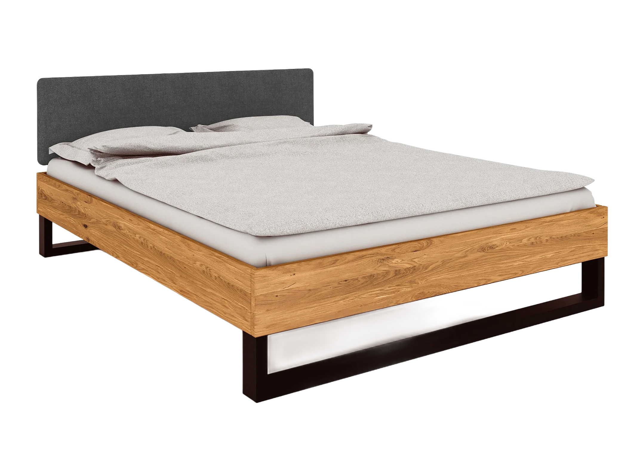 STEEL - Bett mit Polsterkopfteil 160x200 aus Wildeiche, naturgeölt