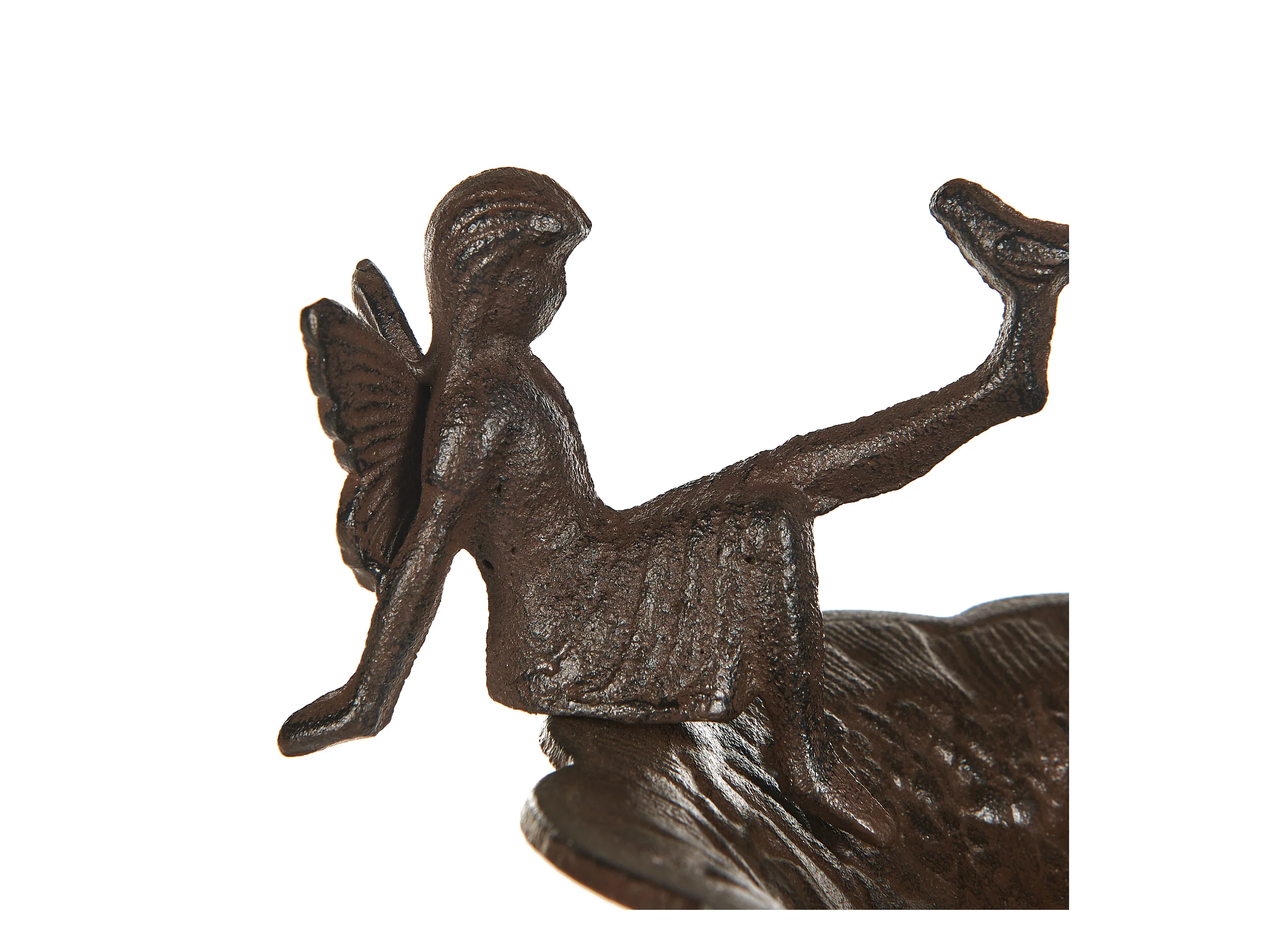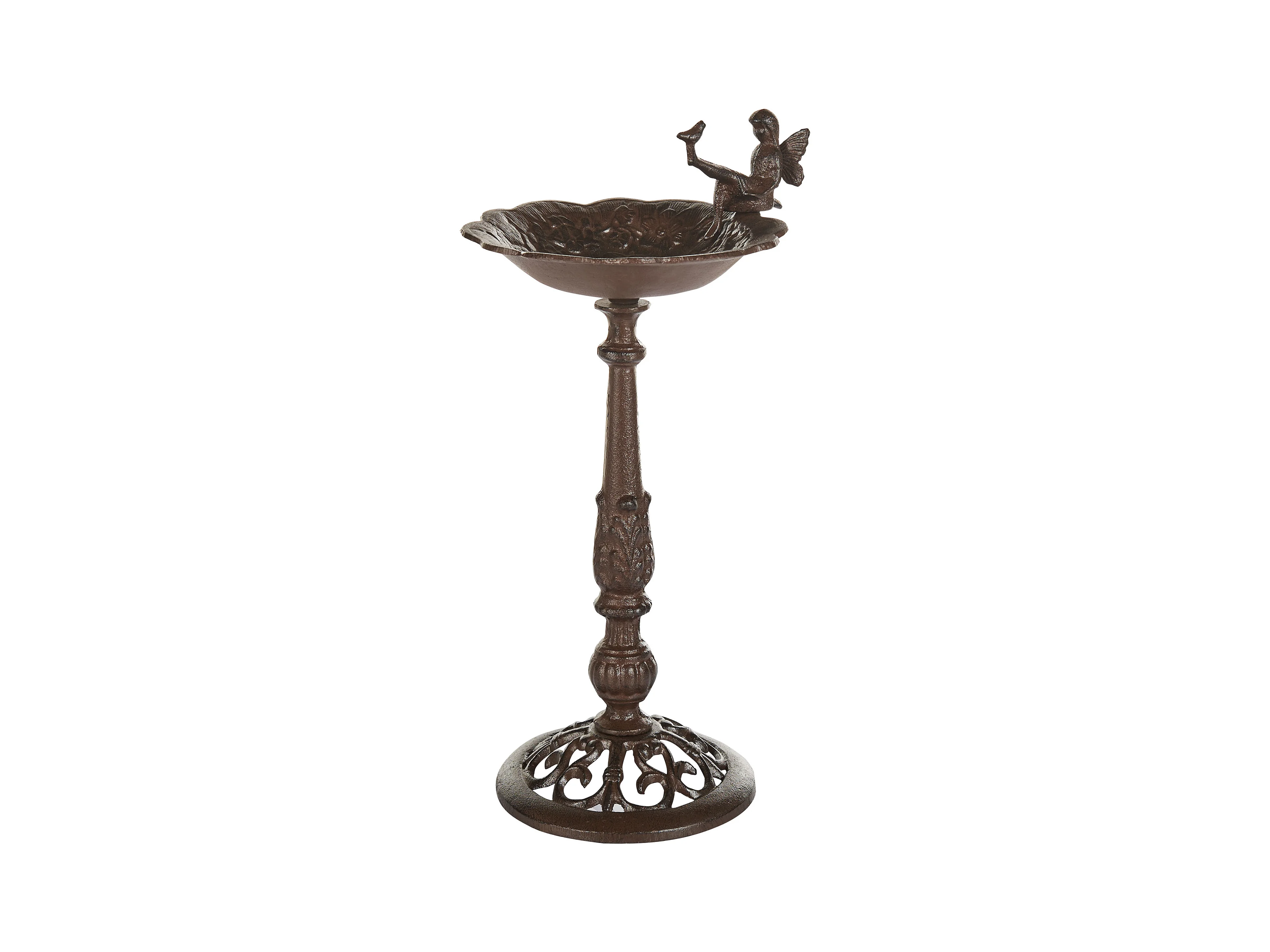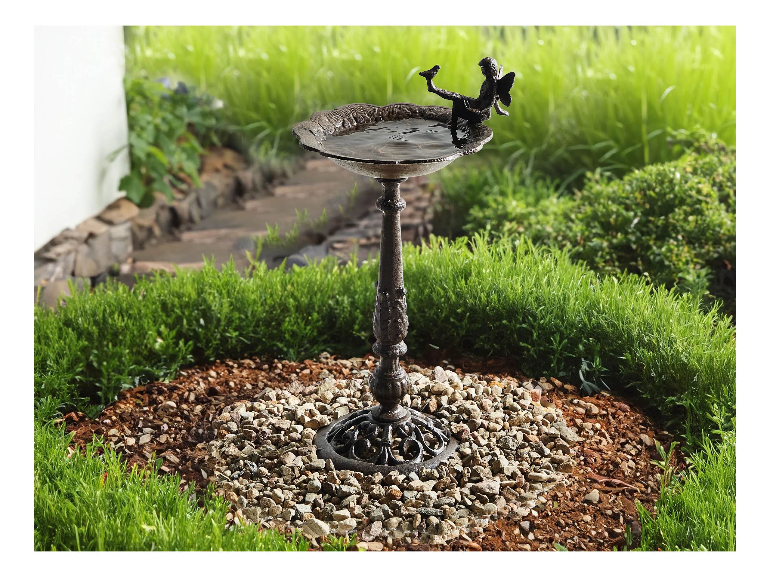 Stehende Garten Vogeltränke mit Standfuß Feen-Figur Metall braun 53 cm hoch Lark