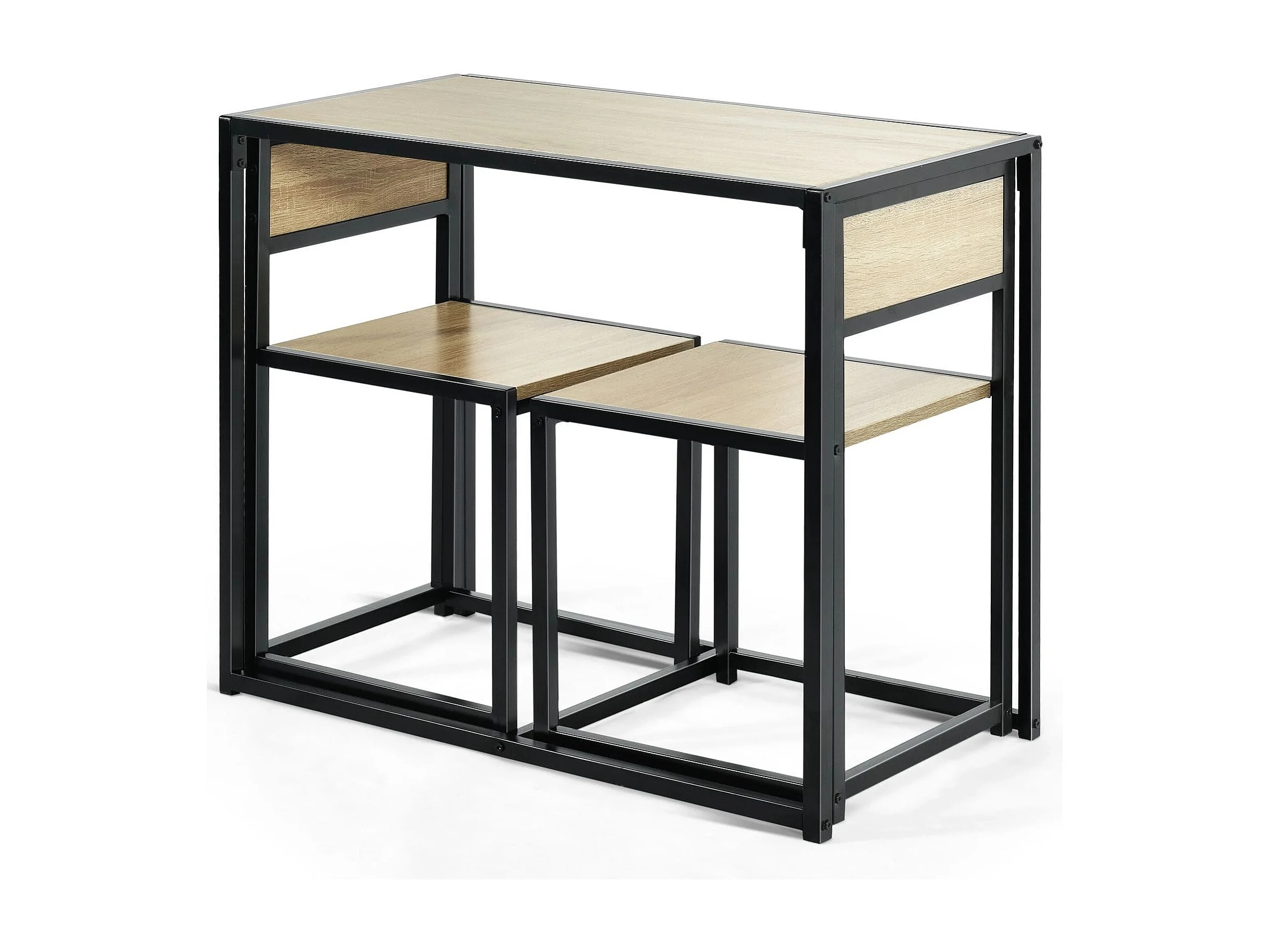 3 tlg. Tischgruppe Essgruppe Bartisch-Set Küchentisch Esstisch Tisch + 2 Stühle Natur