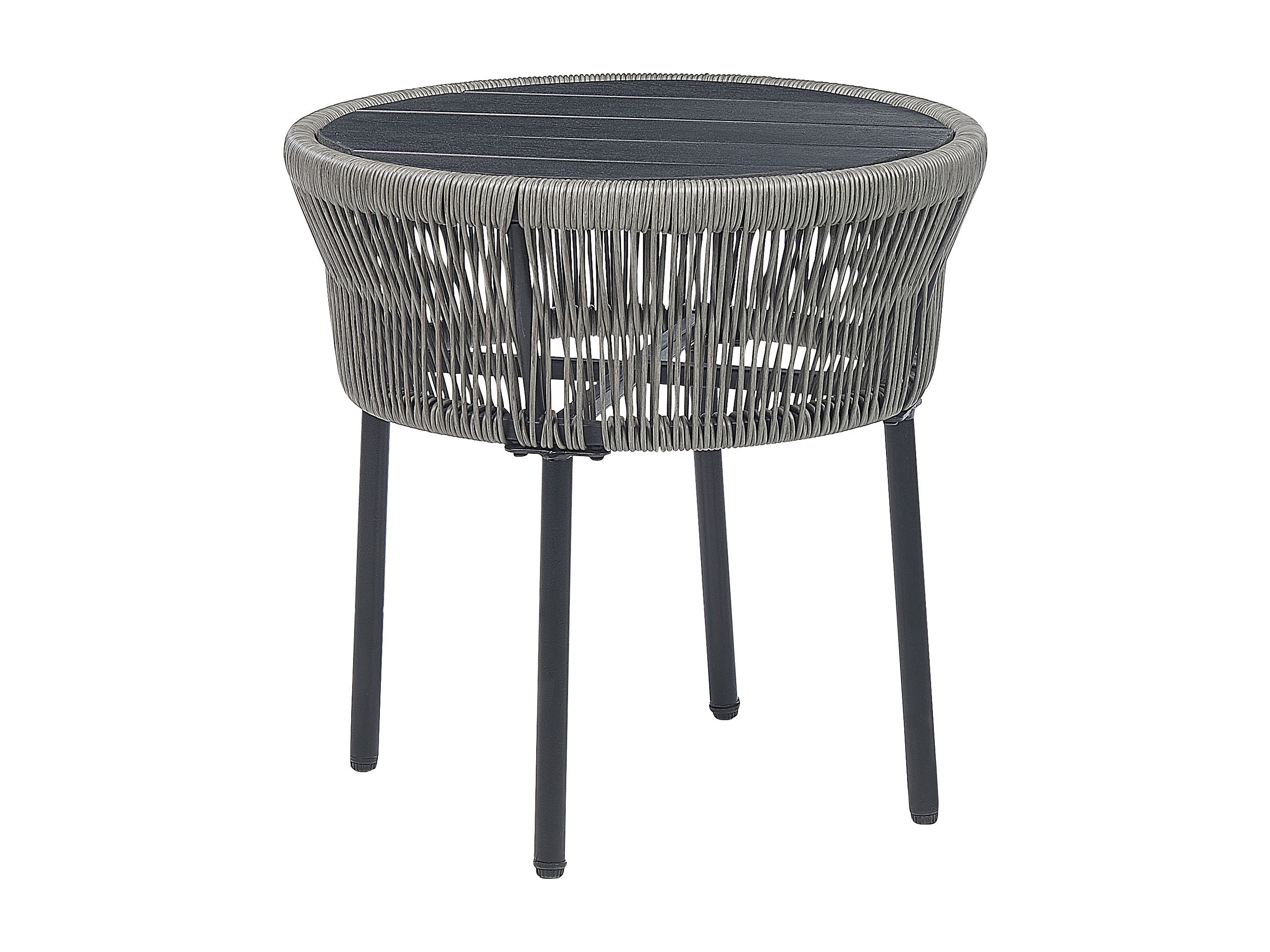 Balkonset Dunkelgrau Polyrattan Beistelltisch mit 2 Stühlen Spaghetti-Optik Modern Mexikanischer Stil Outdoor Balkon Terrasse Garten Möbel