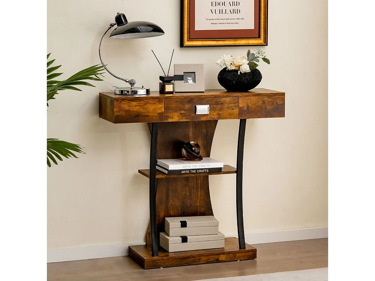 T-Förmiger Konsolentisch für kleine Räume 91 x 30 x 88 cm Rustikales Braun