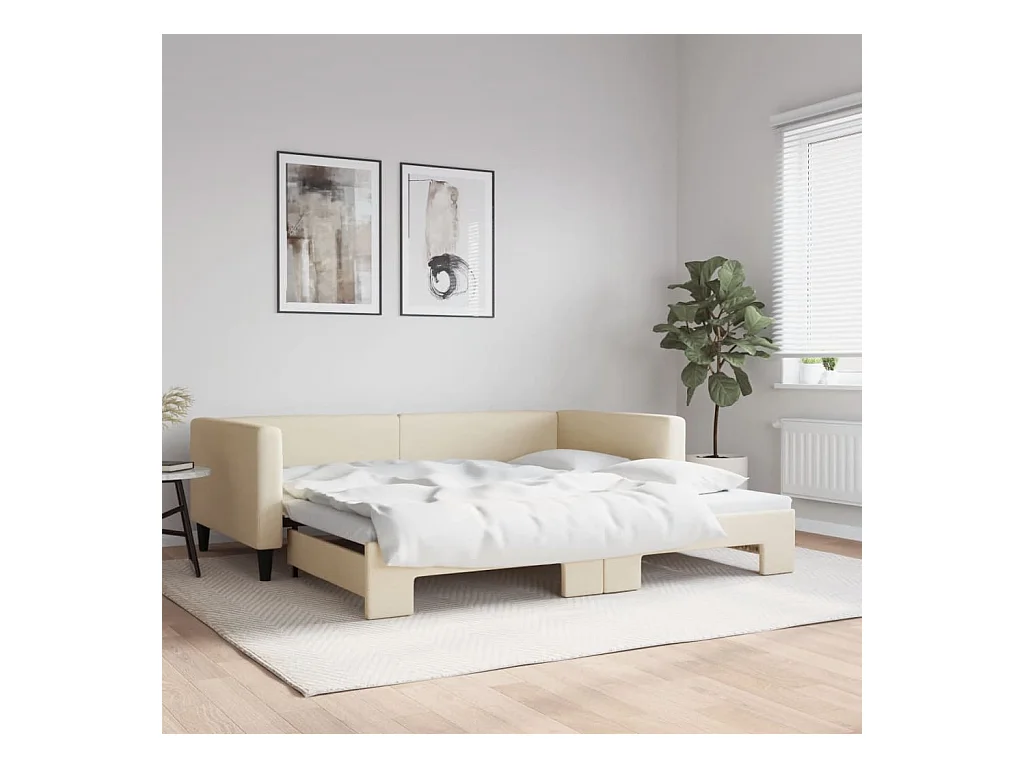 Tagesbett Ausziehbar Creme 100x200 cm Stoff