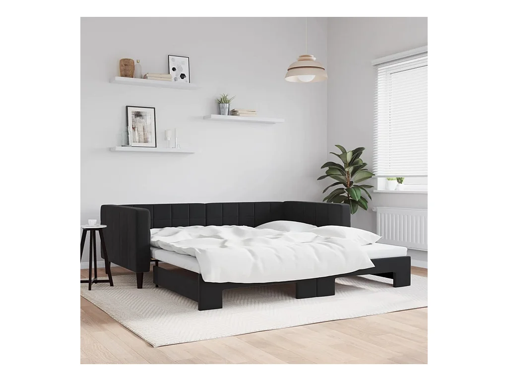Tagesbett mit Ausziehbett ohne Matratze schwarz 100x200 cm