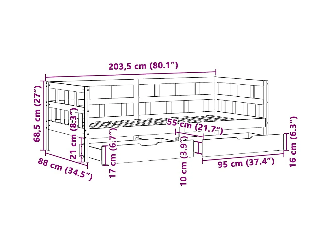 Tagesbett mit Schubladen Weiß 80x200 cm Kiefernholz