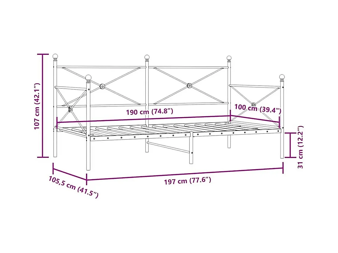 Tagesbett ohne Matratze Schwarz 75x190 cm Stahl