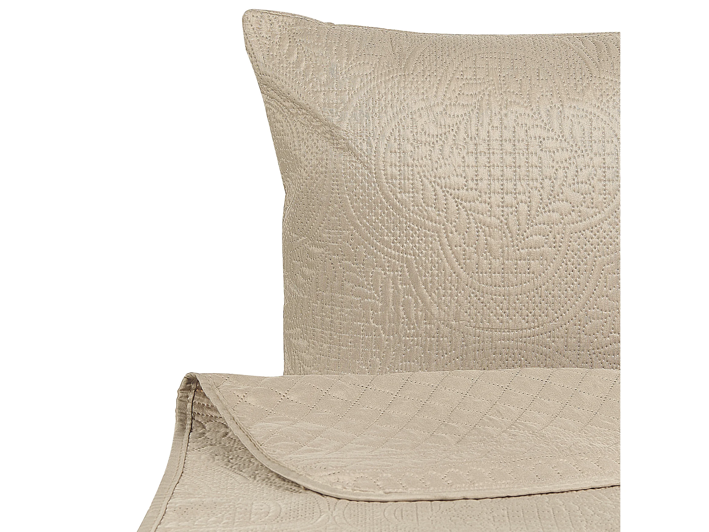 Polyester Tagesdecke mit 2 Kissen geprägtes Muster grau taupe 160 x 220 cm Shush