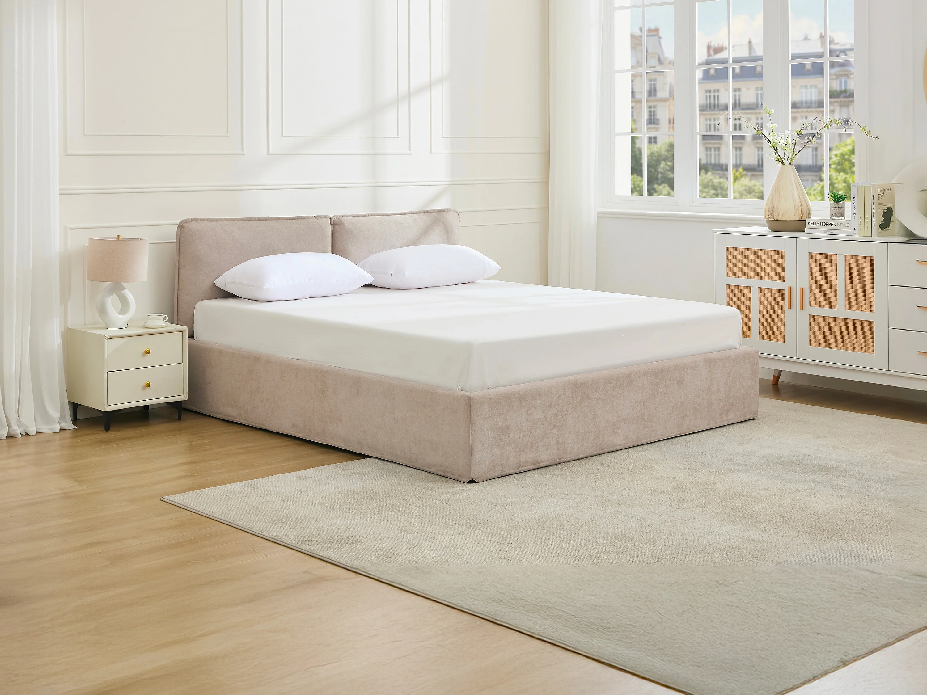 Bett mit Stauraum mit abnehmbarem Bezug – 180 x 200 cm – Stoff – Beige + Matratze – TENESE