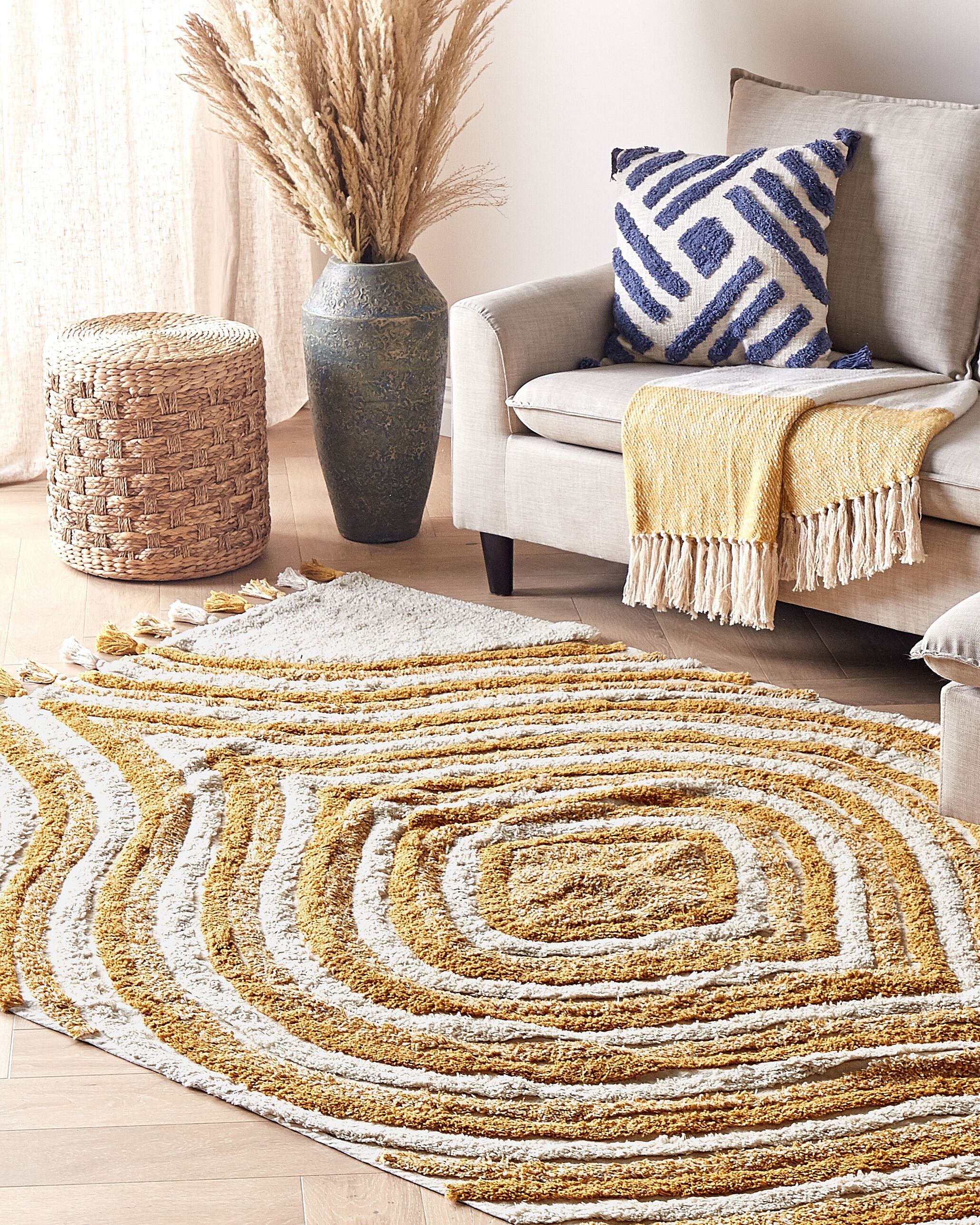 Teppich Baumwolle abstraktes Muster gelb / beige 140 x 200 cm Boho Bingol