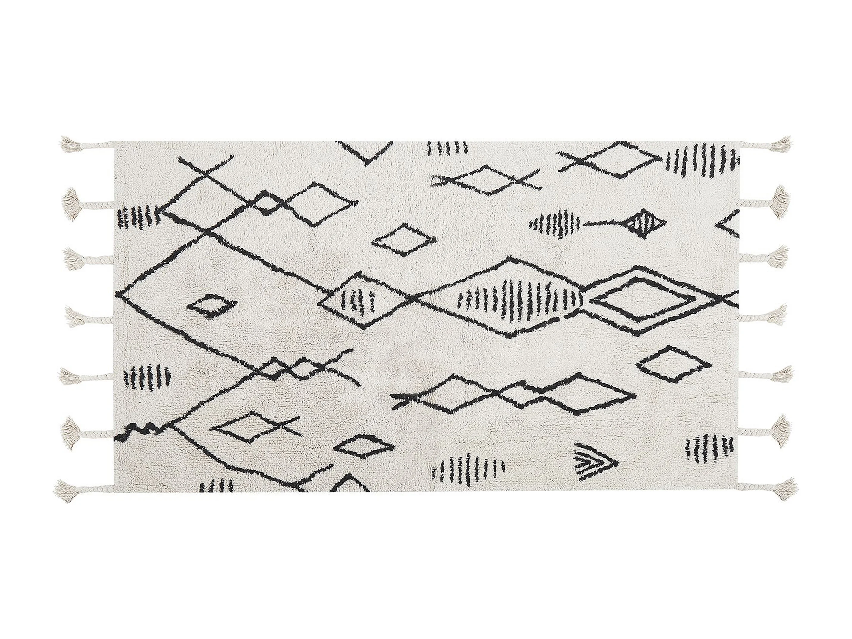 Rechteckiger Teppich mit Quasten Baumwolle Kurzflor 80x150 cm weiß/schwarz Kebir