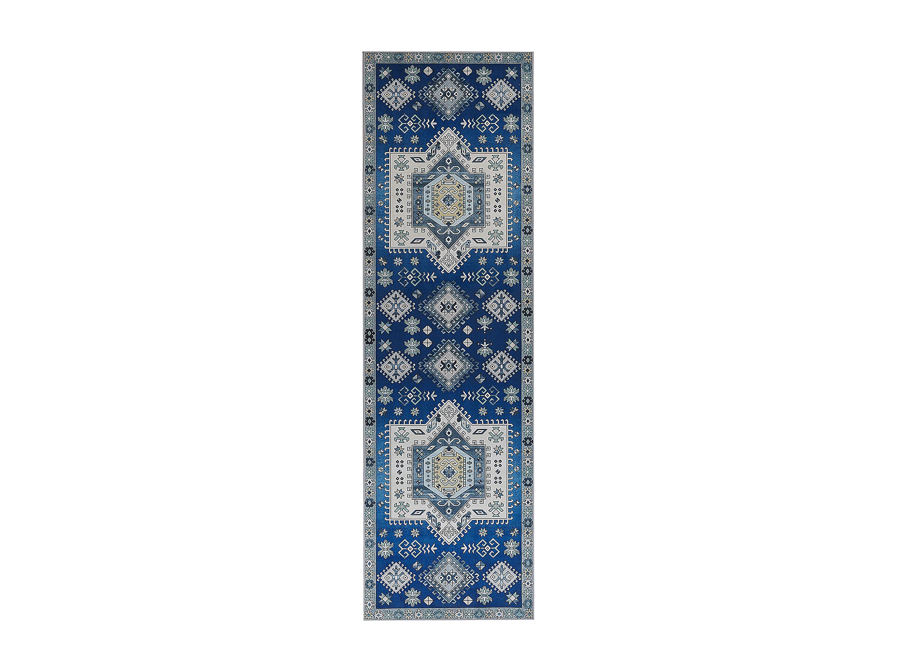 Moderner Teppich Kurzflor geometrisches Muster 60 x 200 cm blau/beige Parvakadli