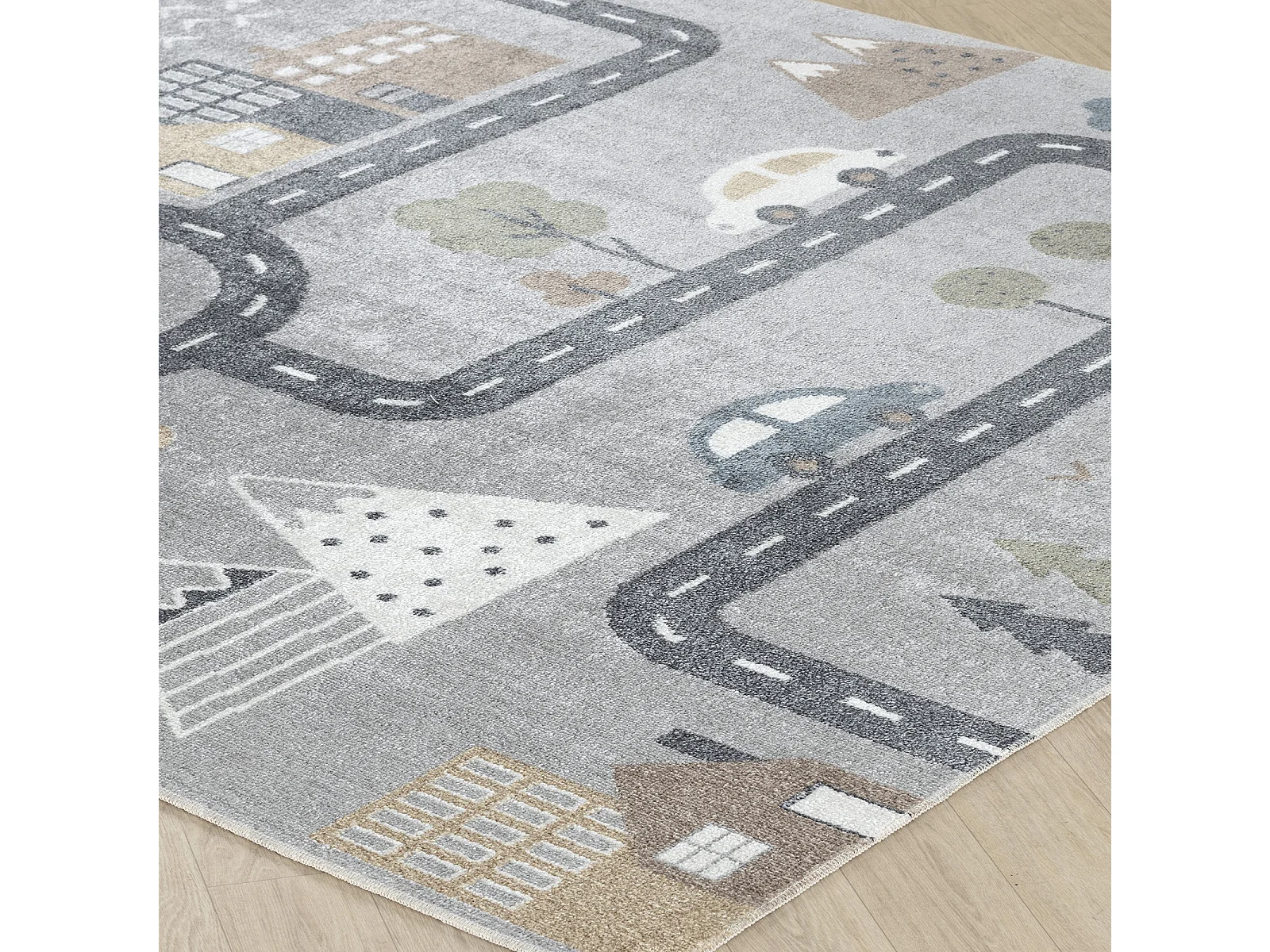 Maschinenwaschbarer Kinderteppich Auto-Rundkurs - Blau/Grau - 120x170cm - VROOMVILLE