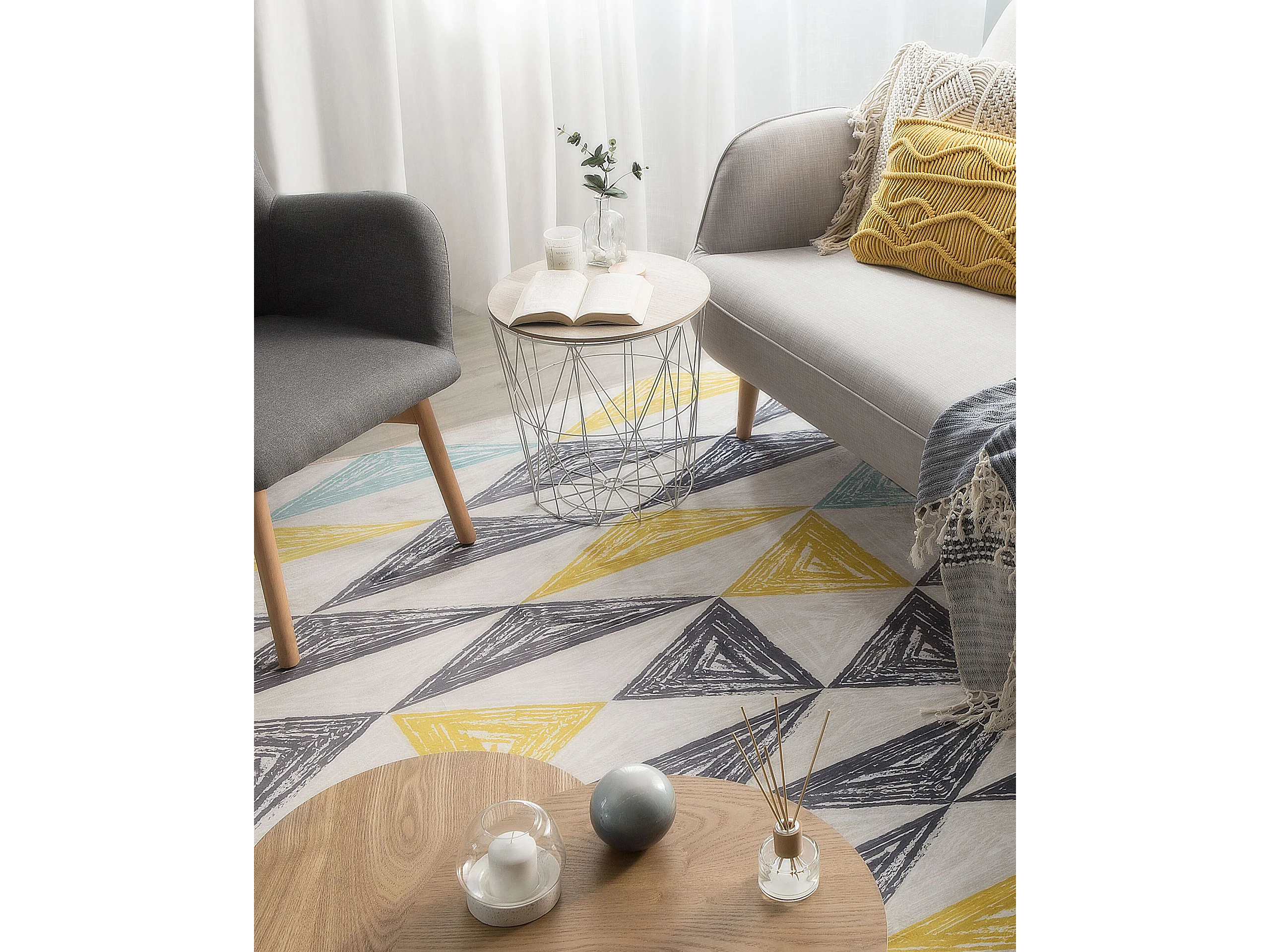 Teppich grau-gelb-mintgrün 160 x 230 cm Dreieckmuster Kurzflor KALEN