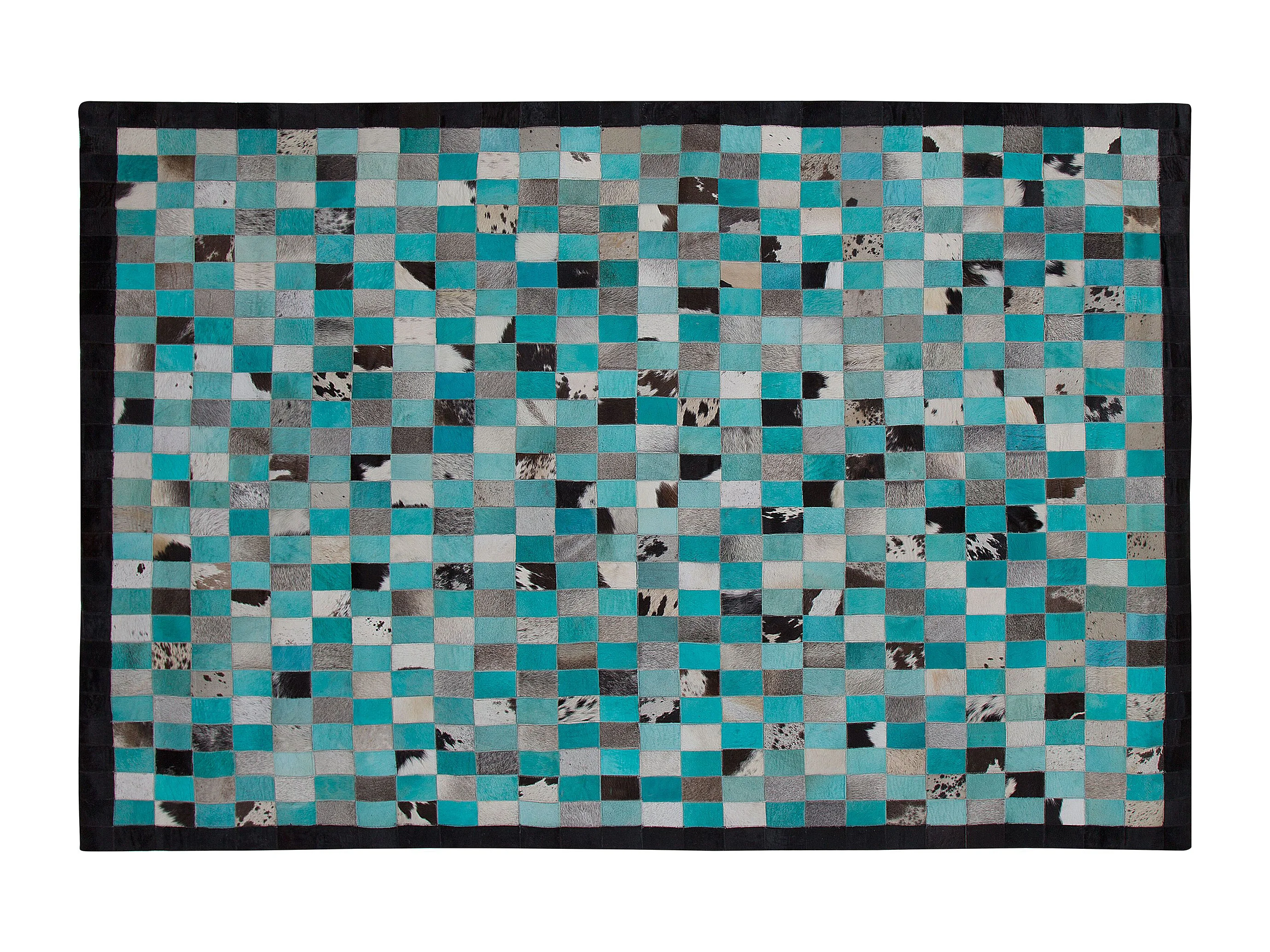 Rechteckiger Leder Teppich mit leuchtendem Muster in Türkis/Grau 140x200 cm